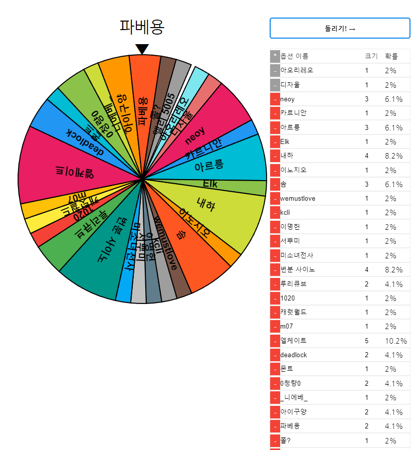 어우… 참여하신 분들이 많아서 목록이 끝까지 찍히지도 않네요.