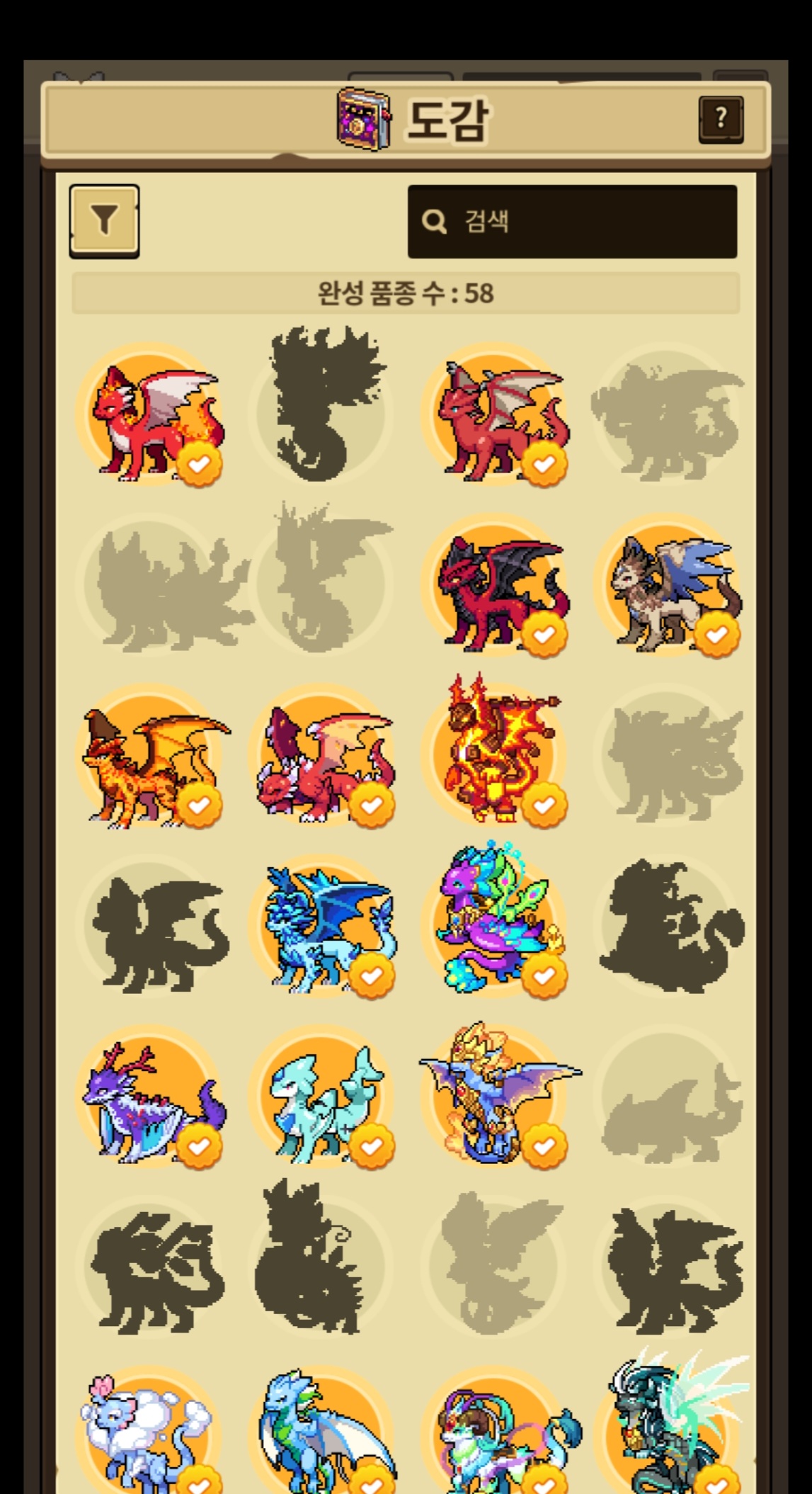 도감은 58종 달성했습니다..