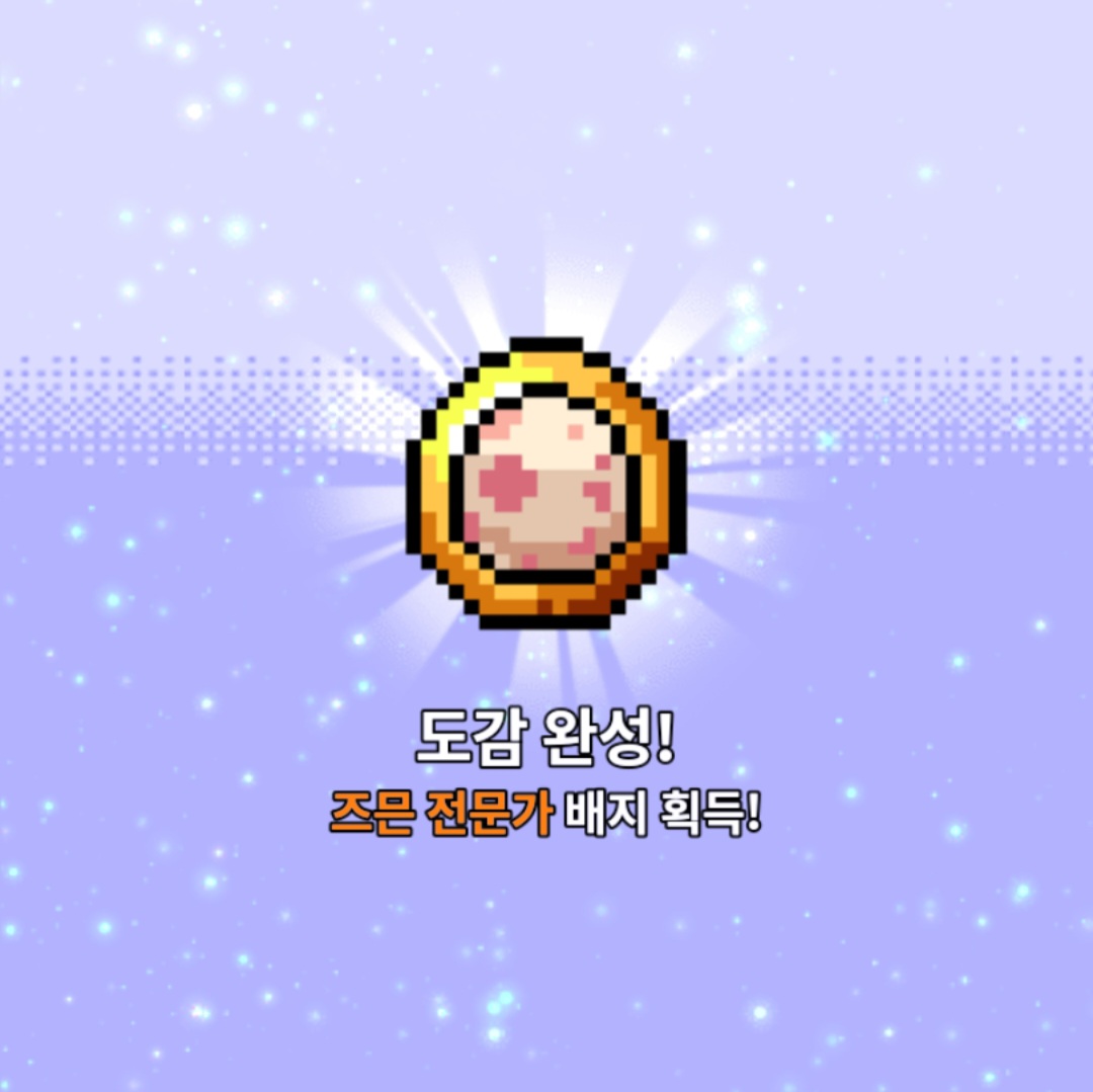 딱 도감 등록되면서 배지 얻는 연출, 효과, 이펙트..