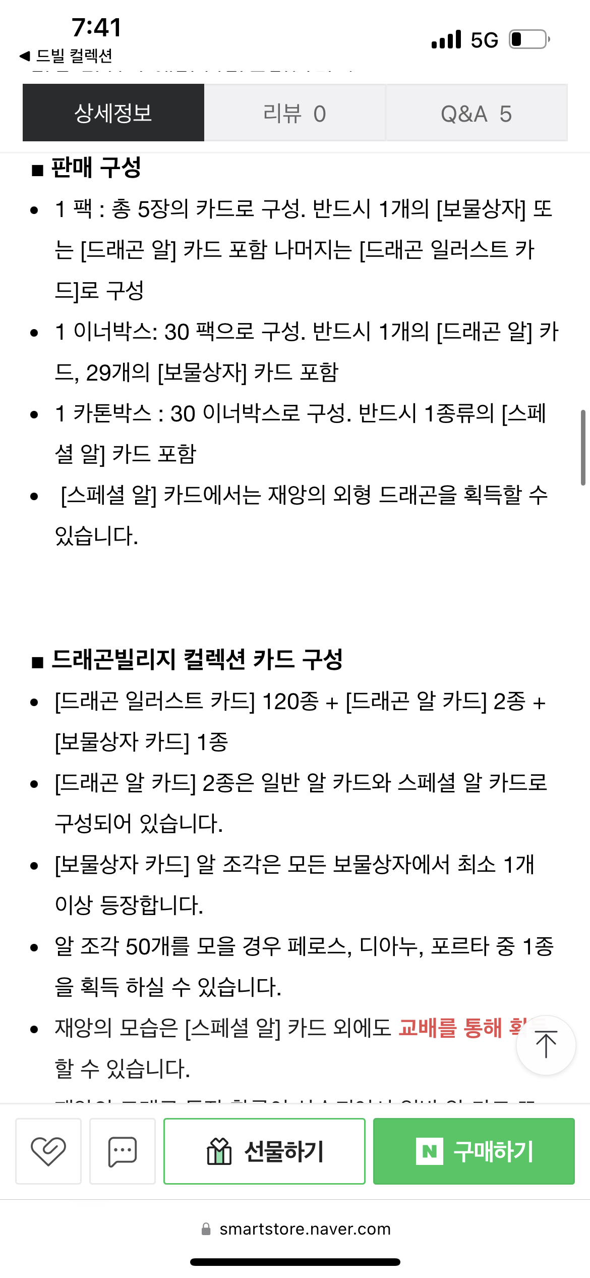 만약 맞으면 카드팩 하나에 5장이 들어있고