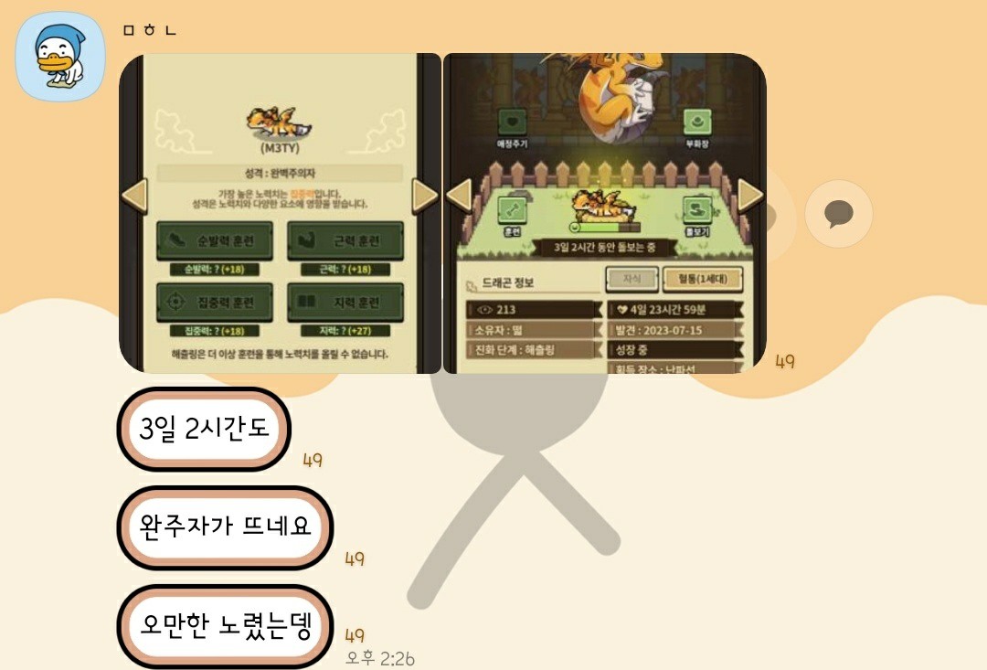 그 기간동안 훈련 0번하고 방치해서 그런거라 예상중