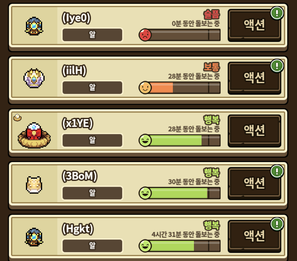 30분 정도 탐험 돌면서 먹은 알들… 고신 얻으려 했지만 이 정도로 만족하렵니다^_ㅠ