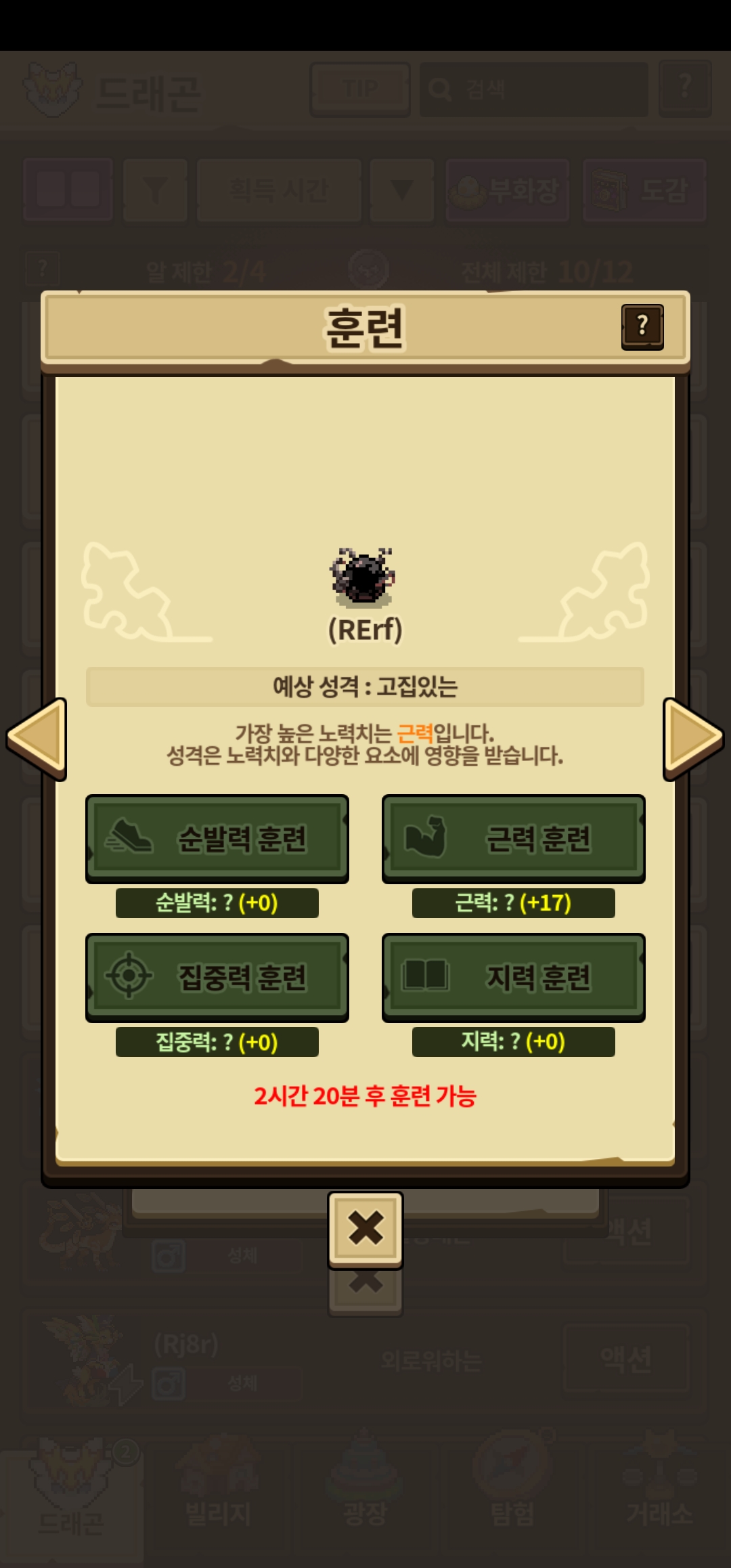 집중력 헤네스로 20인거확인하고 근력14에서 soso로 3찍었는데 근력 높은로 바꼈습니다