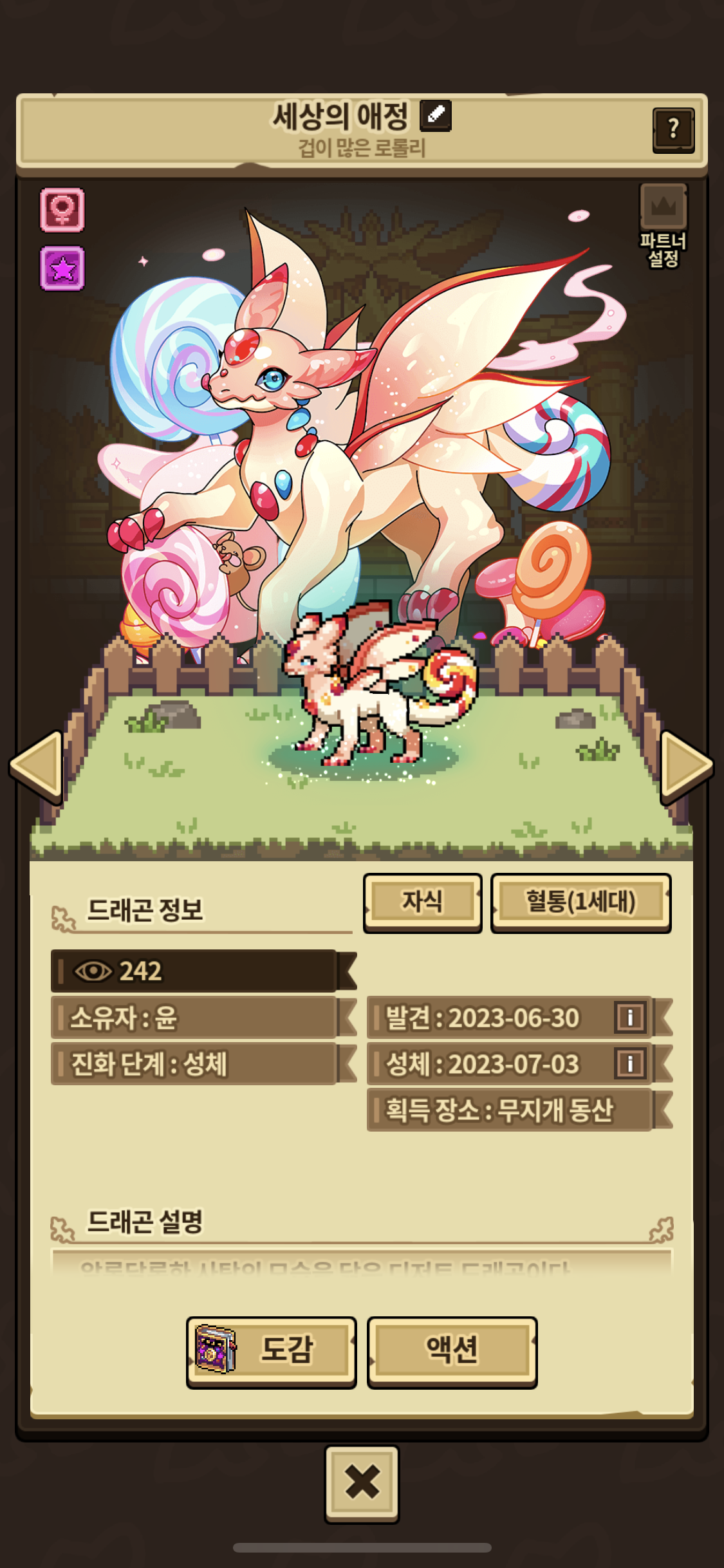 광적인, 몰입하는, 내향적인, 애교많은, 호기심많은, 성실한, 겁많은, 기품있는, 순수한 로롤리