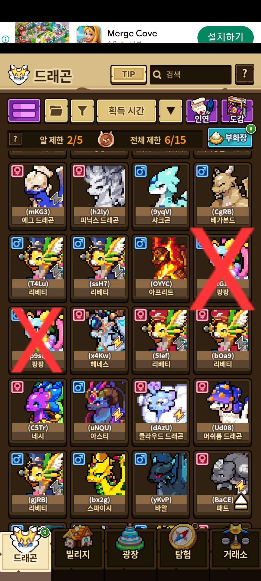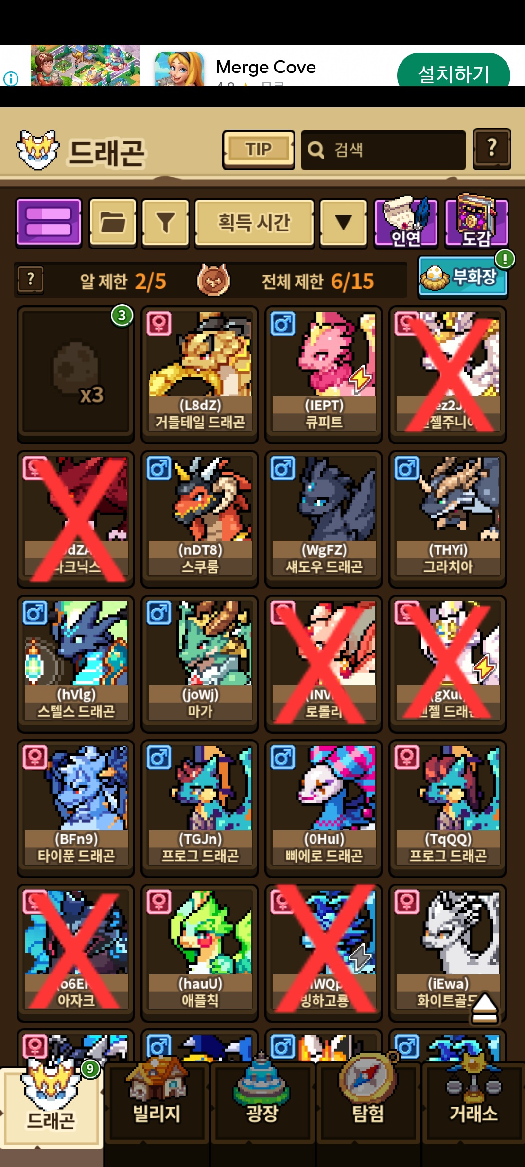 ( 교배 불가, 파견용, 다른 이벤트 사용 예정 용들 X 해뒀습니다.. + 스텔스 )