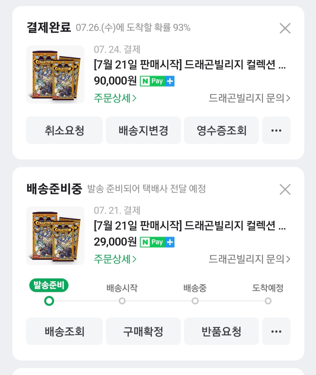행사때 타 지역에 있어서 지인이 대신 구매해준 카드팩 3상자.. 어제 귀가하고 겨우 카드깡 다 하고 방금 코드입력까지 했습니다.