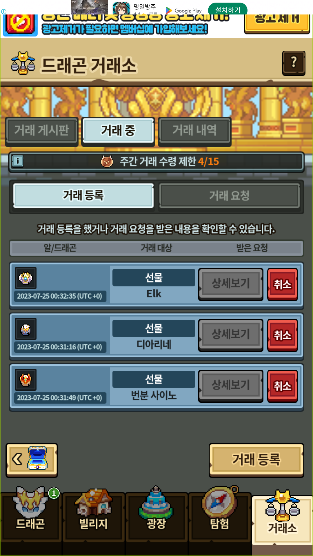 번고와 엔젤은 알칸이 아침이되야 생기는 관계로 아침에 교배하겠습니다
