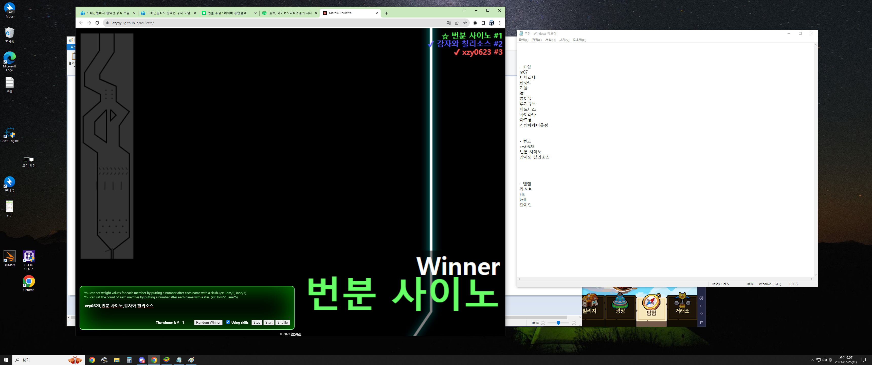 댓글에 게임 닉과 자신이 원하는 아이의 번호를 적어주세요