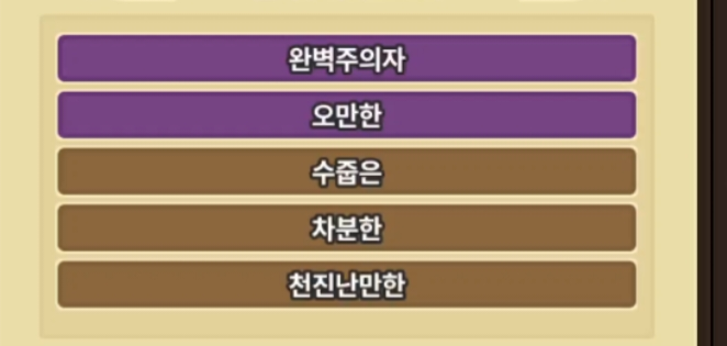 수줍은 차분한 천진난만은 무슨기준으로 뜨는건가요??
