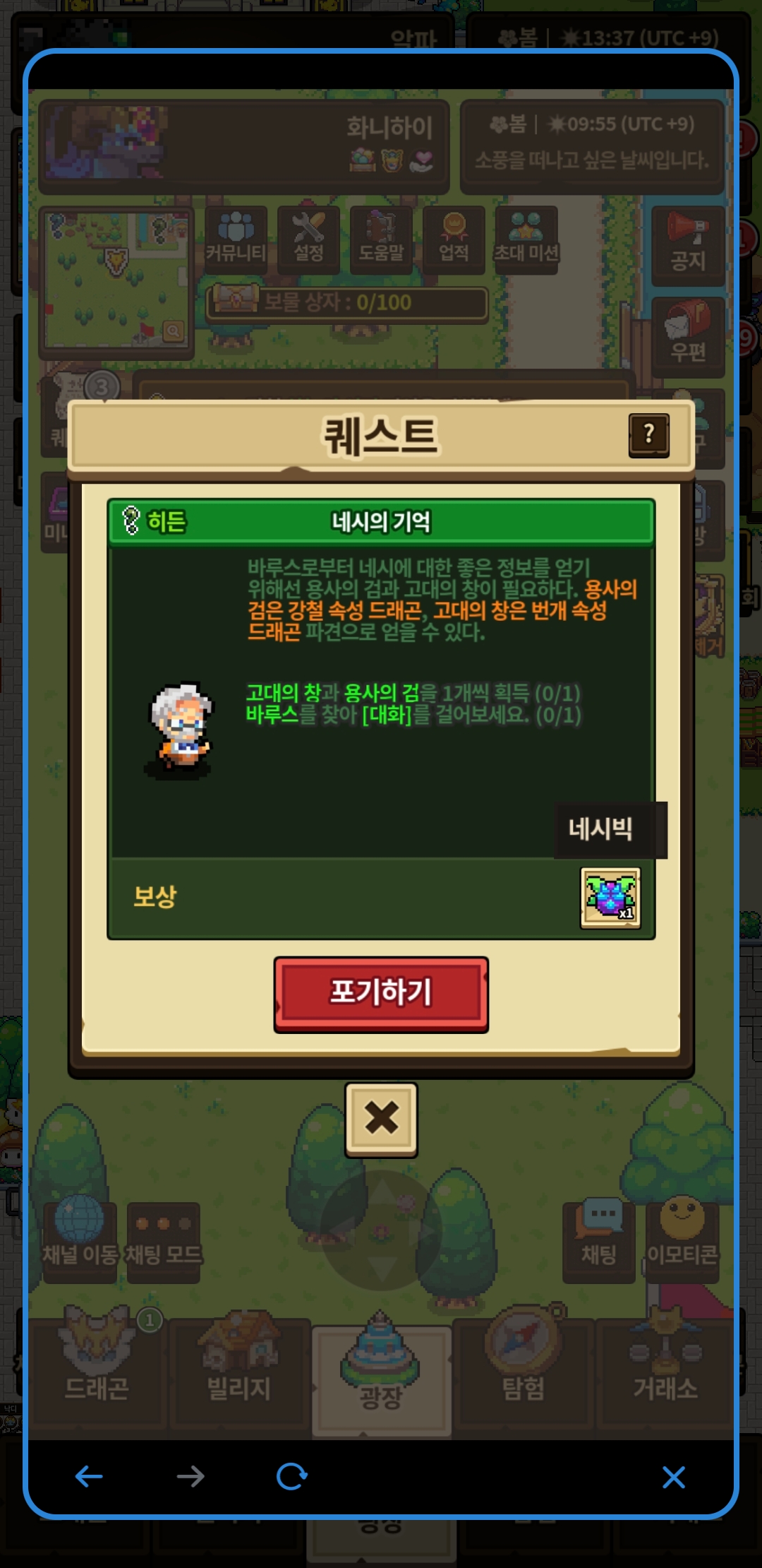 대부분의 히든퀘스트는 성룡으로 파트너 드래곤으로 지정후에 받을 수 있으며, 드래곤 빌리지 컬렉션에 있는 5개의 히든 퀘스트를 이렇게 해서 정리하고있습니다. 그밖에도 여러 히든퀘스트들이 발견되면 알려주시길 바랍니다 :)