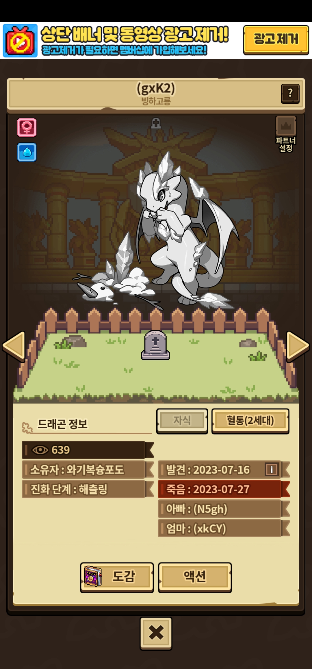 아까 혼혈 루네라 3세랑 빙고 해츨링이랑 교환했습니다.