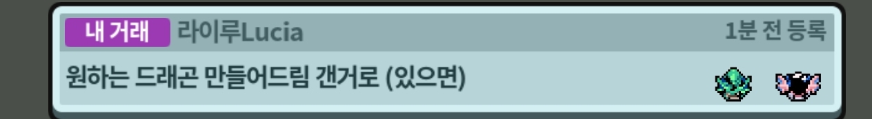 있으면 줍니다 없으면 빌리지 방명록에 써둠 드래곤에 알맞는 제시로 넣어주시면 교배로만듬니다. (카드코드 드래곤 없구여, 교배종 있음)