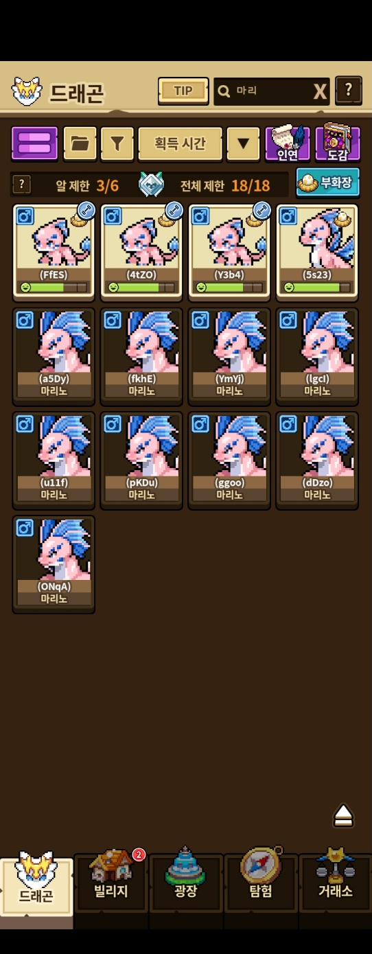 마리노 성별 버그있나요? 수컷만 나오네요