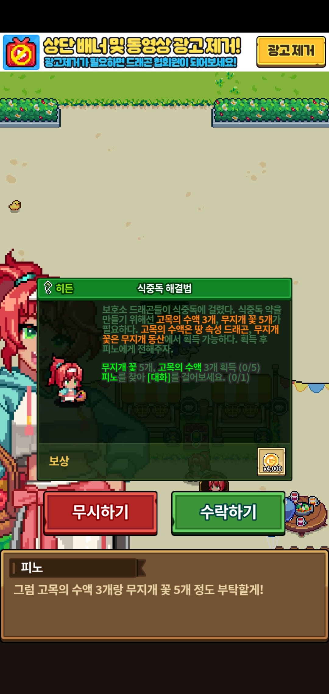 식중독 해결법 퀘스트가 떴습니다.