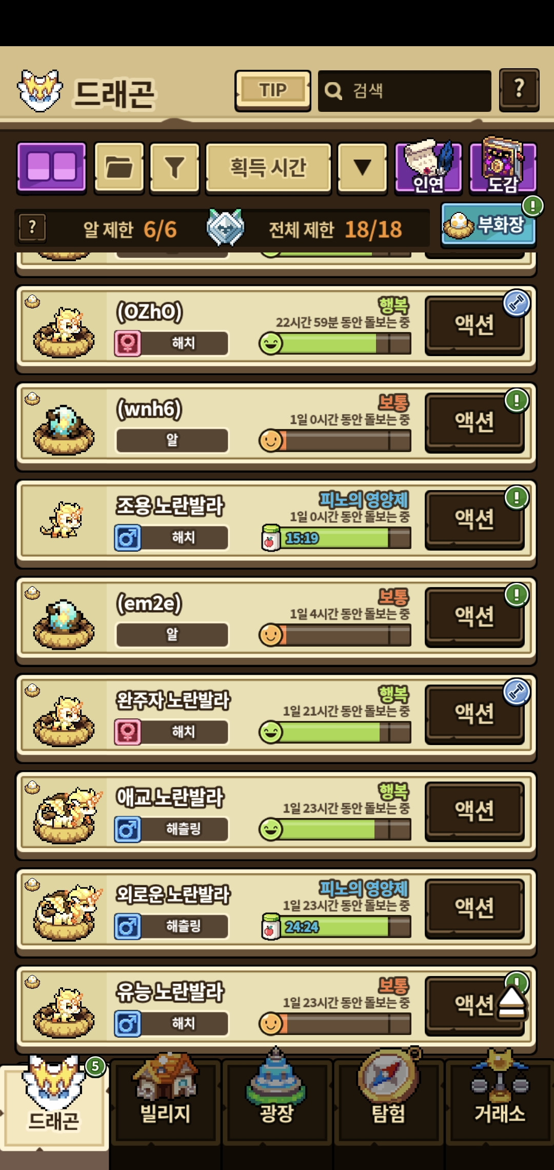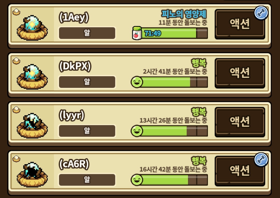 유능 내향 애교 완주자 기품 서투른 조용 호기심 광적인 오만 겁이많은 외로워하는 도전중(총12마리)입니다