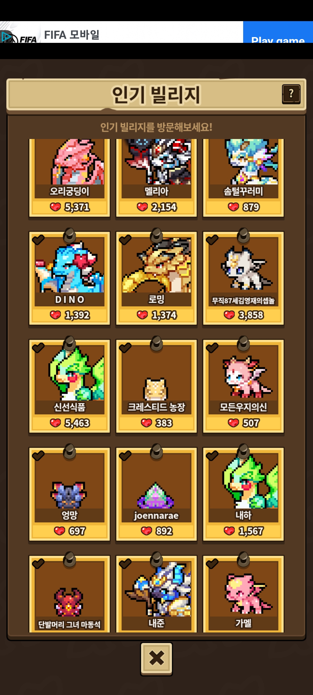 와 인기 빌리지 들어온거 처음이에요