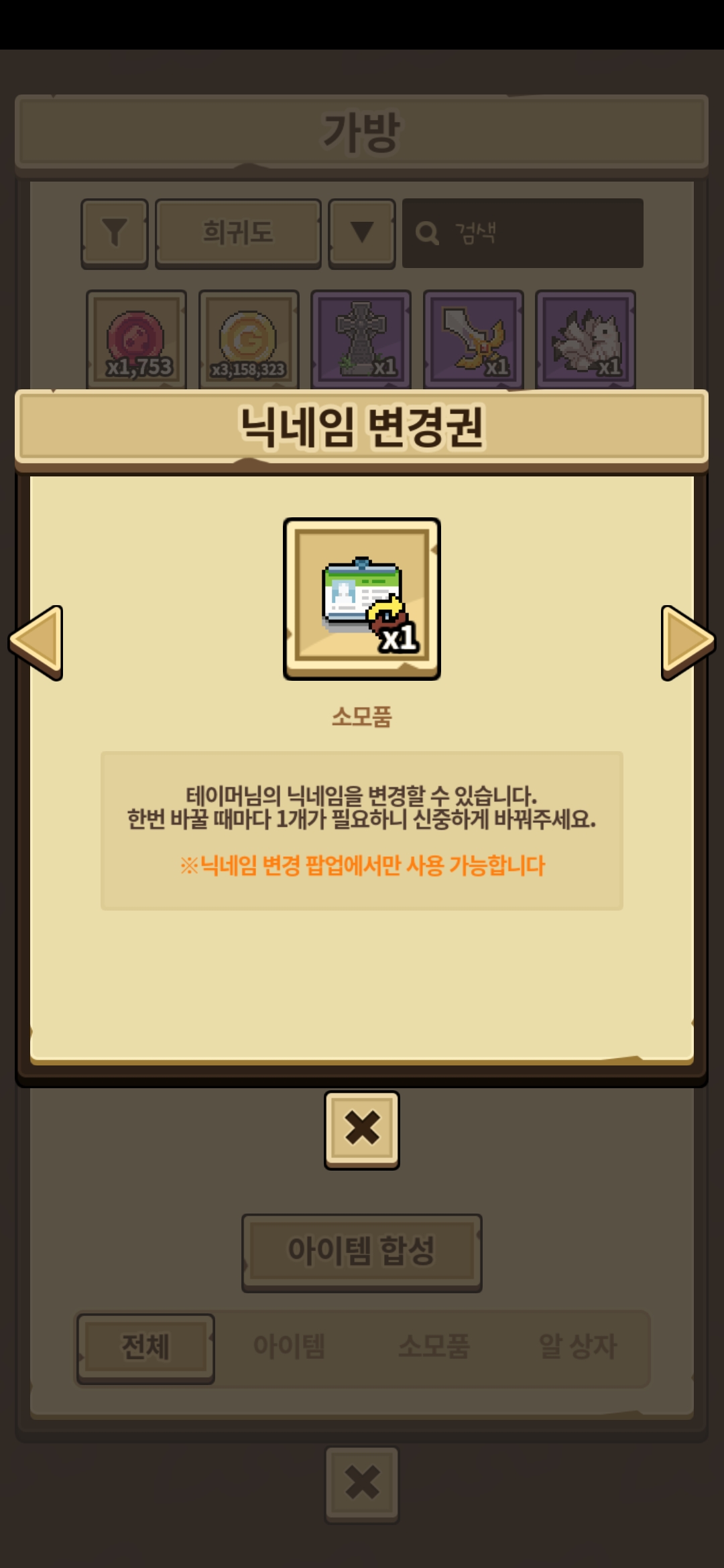 제가 저번에 분명 무료닉변을 했는데 오늘 가방을 보니까 닉변권이 하나 더 있더라구요 이거 혹시 이번에 패치같은걸로 하나 더 준걸까요??