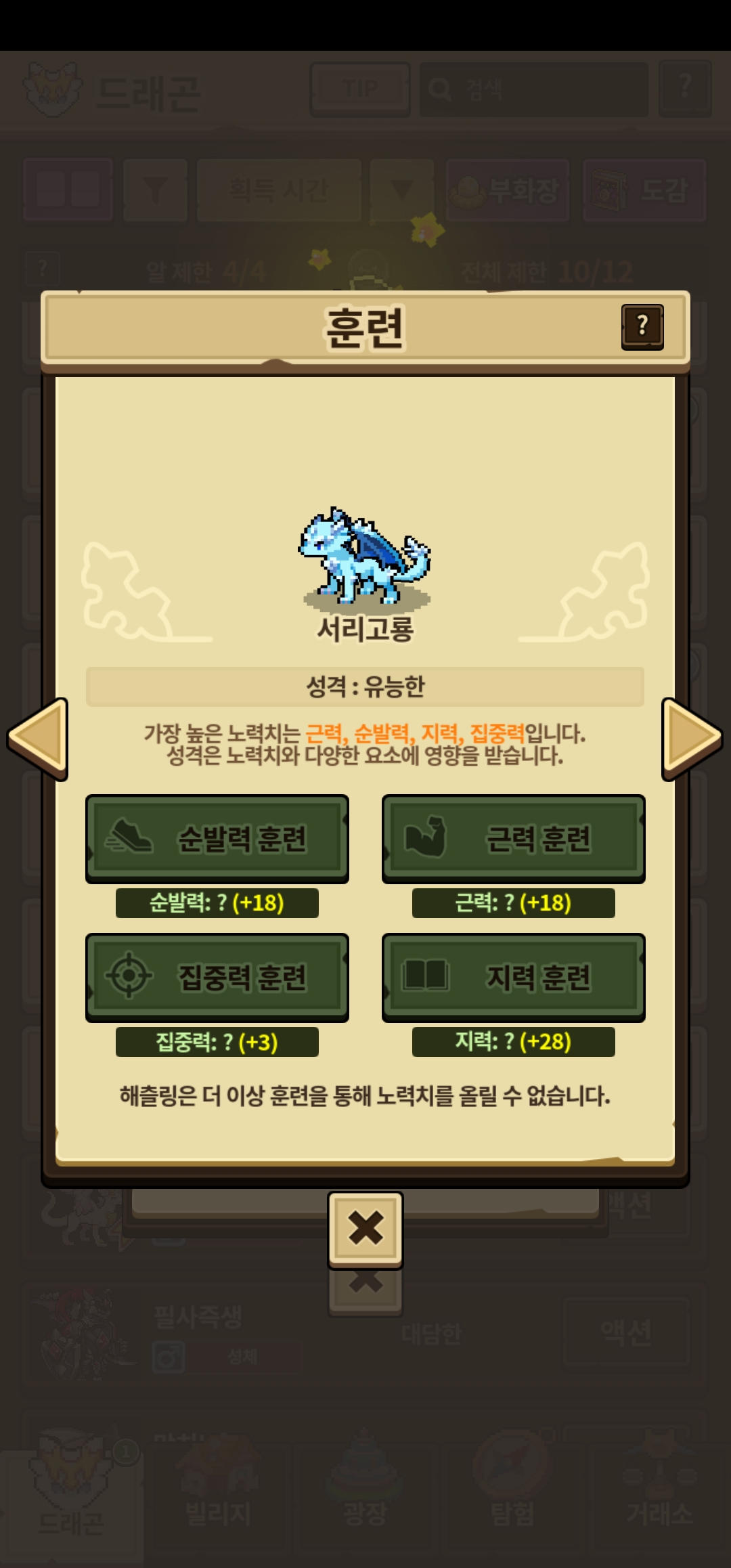 저는 초기에 집중력 25뜨고 순발 10 근력 10 지력 0으로 떴었어요