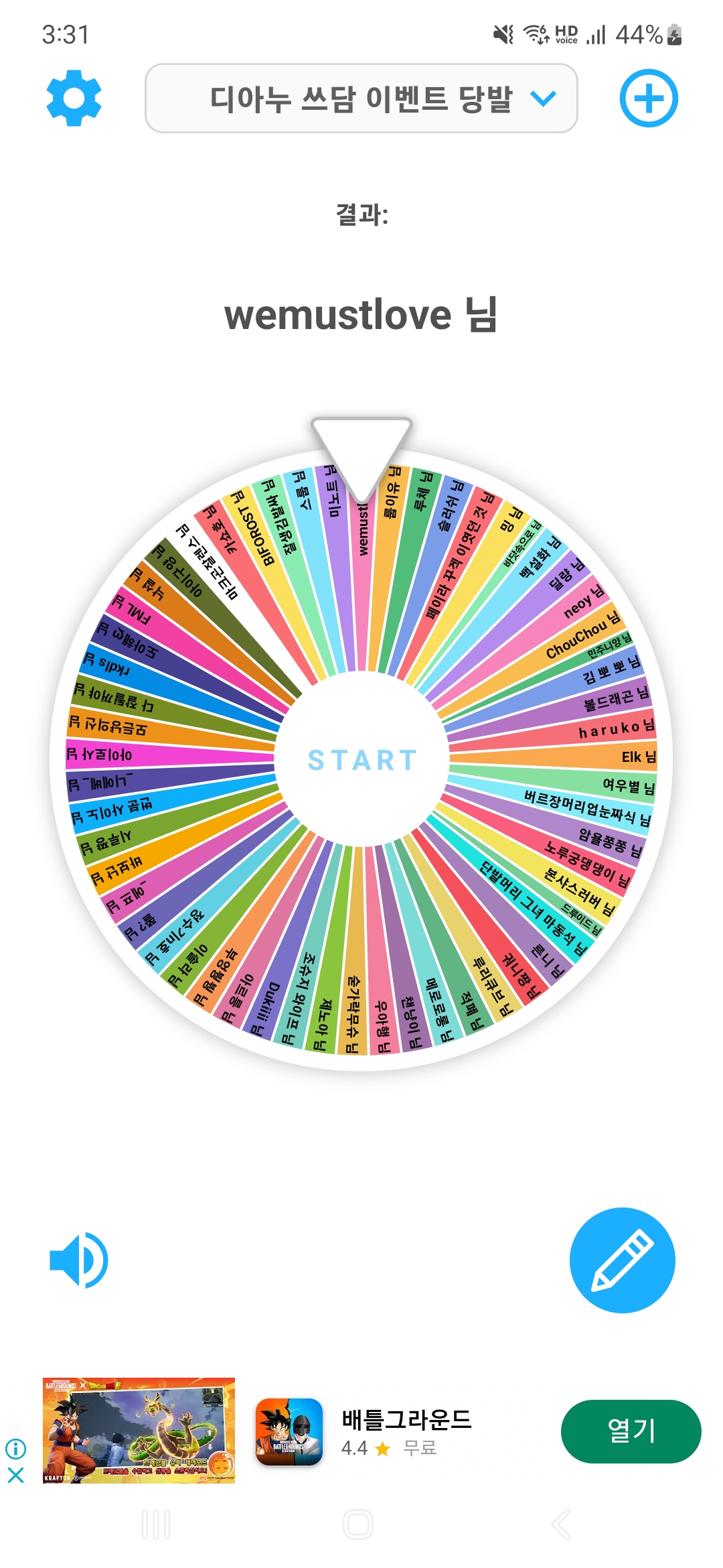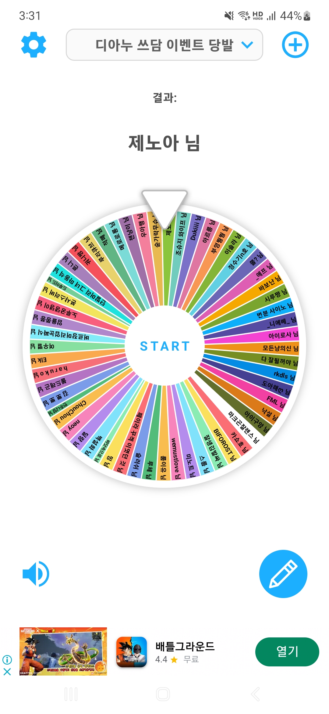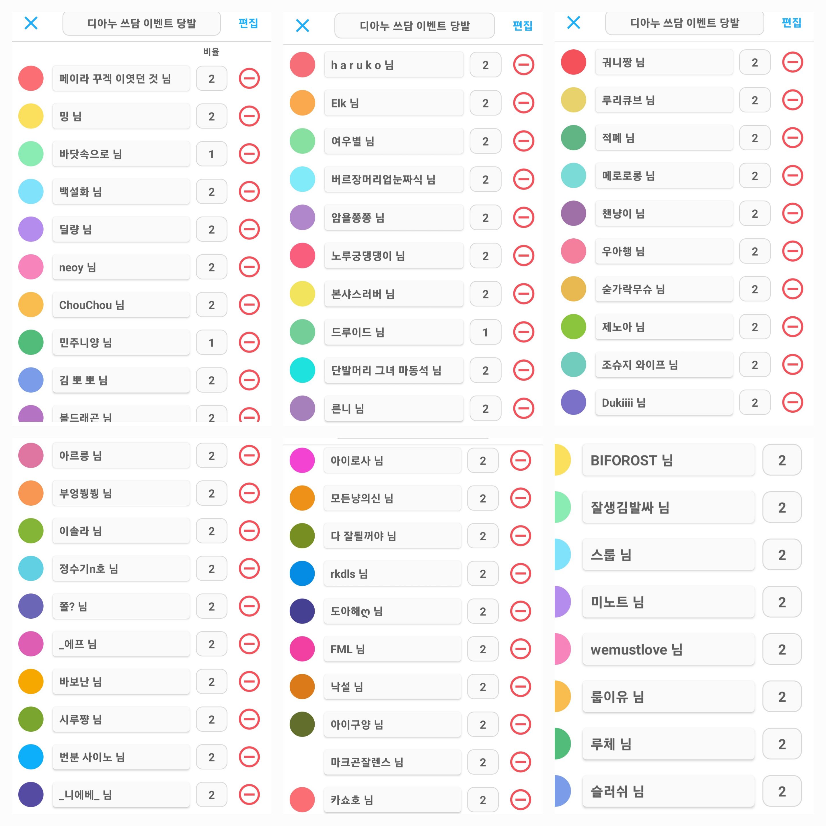 룰렛에 하나하나 이름 추가하느라 시간이 좀 걸렸네요 죄송합니다ㅜㅜ 사진에 이름 기재해주신 분들은 2로 설정하고 돌렸습니다