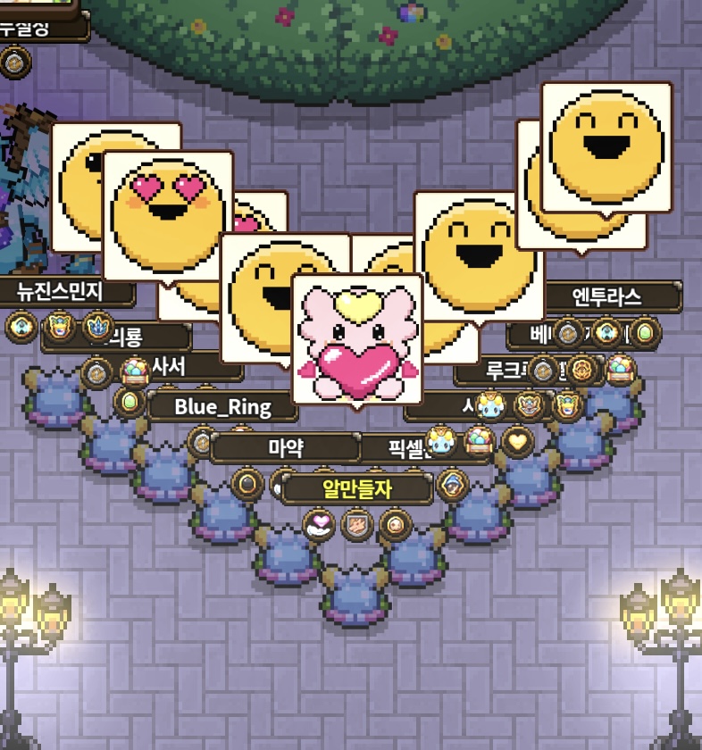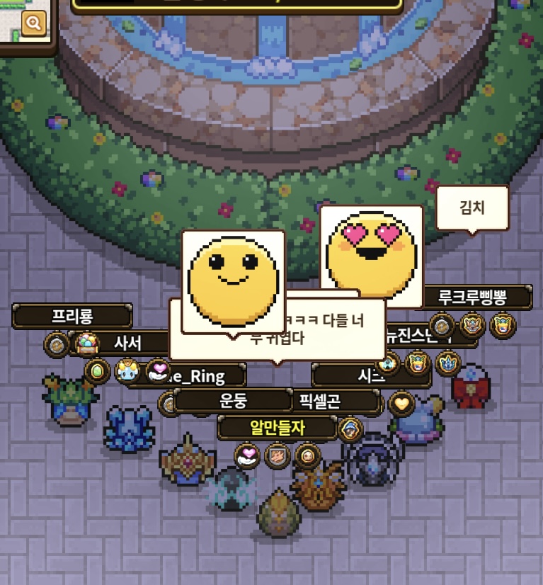1-1, 4, 10 서버에 알모임에 참석해주신 여러분들 넘 감사합니다 ㅜㅜ 미호레님의 뜻을 이어 시도해봤는데 선듯 참여주신 분들 덕분에 너무 재미있었어요!! 사진도 같이 찍으면서 놀고 계속 팅겨서 다른 서버로 가져서 ㅠㅠ 마지막엔 1서버에서 마무리 했네요ㅠㅠ 점술집에서 회식하기로 했는데 서버 이동 땜에 어정쩡하게 끝나서 너무 아쉽지만 담에 또 모여요!!