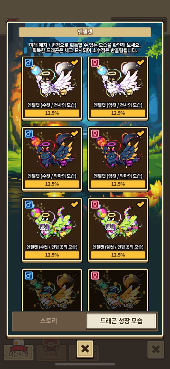 엔젤캣 시간 모습만 그닥 안끌려서 나머지 다 얻으려했는데 뽑을때마다 알맞게 나와줘서 한번도 리롤 없이 클리어ㅋㅋㅋㅋㅋ
