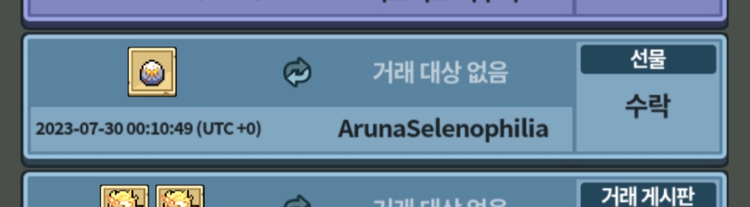 근데 어제 확인을 해보니 제가 준 고신 소유자가 ArunaSelenophilia에서 ArunaLight로 바뀌어져있었습니다; 이에 당황하며 방명록으로 ArunaSelenophilia계정에 내가 준 고신 소유자가 바뀌었는데 이거 부계정이야? 하고 물어봤습니다.