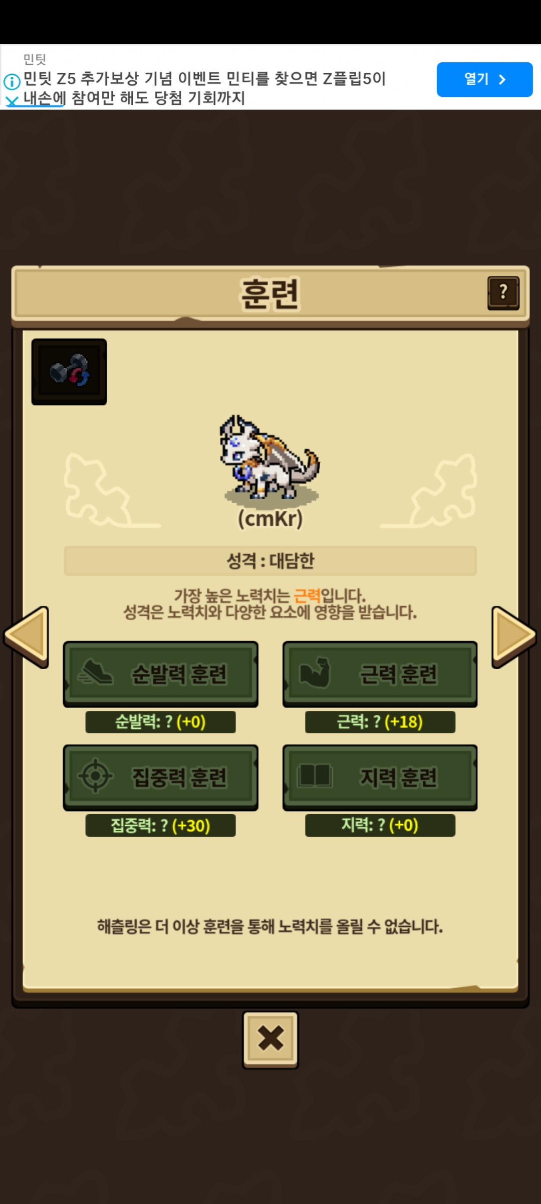 서투른이 한 성격 +3을 10번하는거 아니었나요ㅠㅠ? 이거 왜이런건가요ㅠㅠㅠ 거래받은애라 근력은 제가 한거 아니고 집중력을 10번 한거예요ㅠㅠ