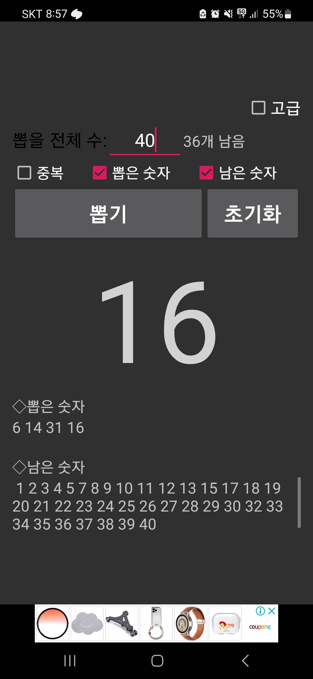4분을 뽑은 결과 6번 14번 31번 16번 당첨입니다
