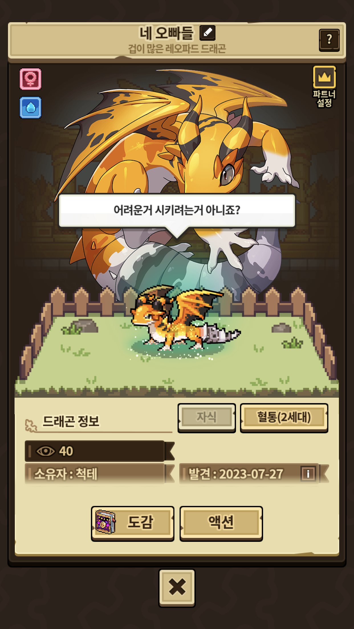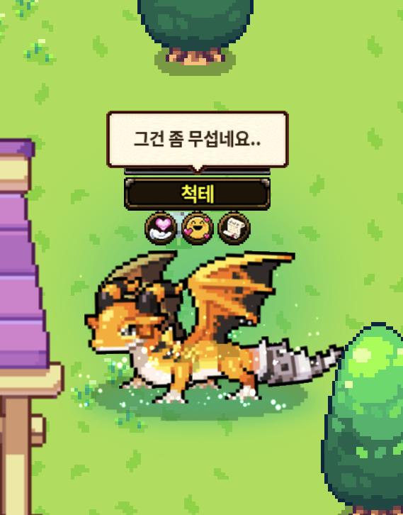 드래곤 창에서 해당 드래곤 도트를 클릭하거나 상자를 열면 대사가 출력되네요!