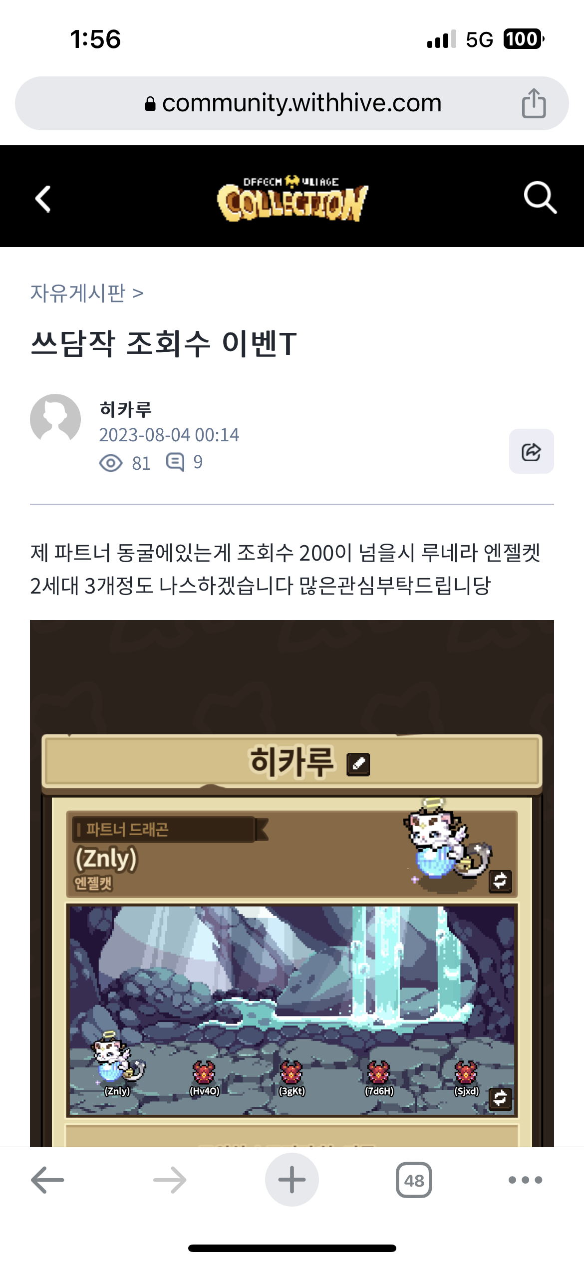 아래거 올렷던 사람입니다 다들 엔젤켓 조회수로 알고있으신데 조회수 200은 헬 조회수 말하는겁니다 헬 조회수 200이되면 한마리당 루네라 지네 엔젤켓 2세대 중 한마리 나눔하겠습니다 이상입니다 다시한번 말하지만 헬 조회수 입니다!!