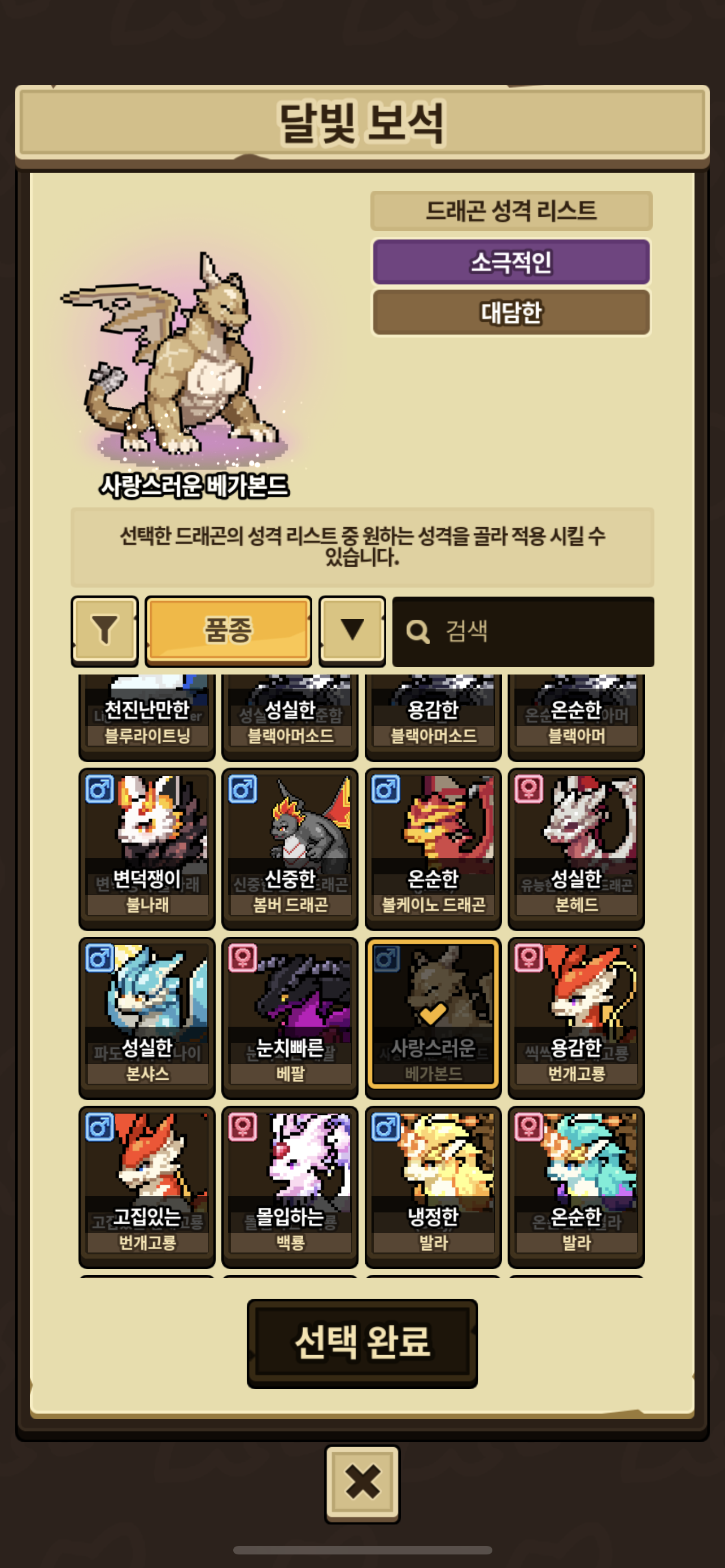 오류로 사랑스러운이 나왔던걸까요.. 성격리스트에는 사랑스러운이 보이지않네요 몇몇의 다른드래곤들도 기존성격이 변경리스트에 없네요