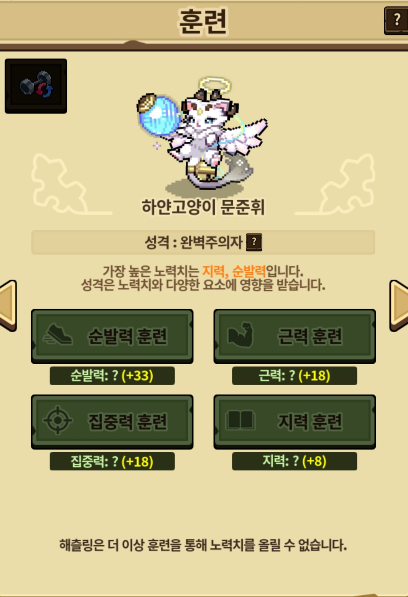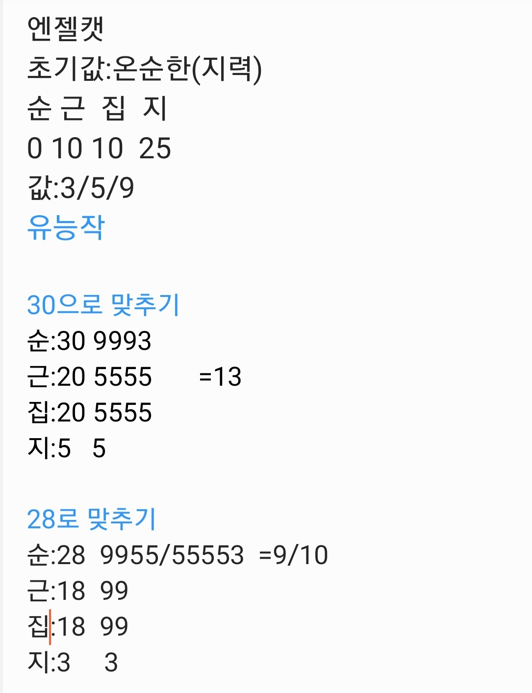 실패한것.... 한곳에다가 5를 넣어버려서 다같이 5를 추가한.. 으잉 근력이랑 집중력에 각각 5만 더