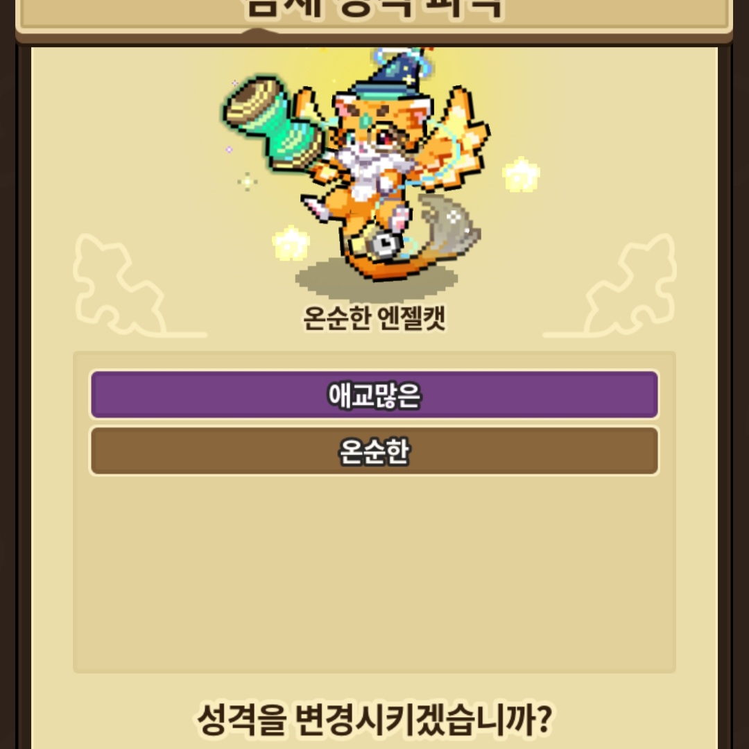 그제 인형 엔젤캣 루네라 실패하고 어제 달빛 보석으로 겨우 바꿨눈데 오늘 자란 악마 엔젤캣… 너마저 온순한…. ㅡㅡ