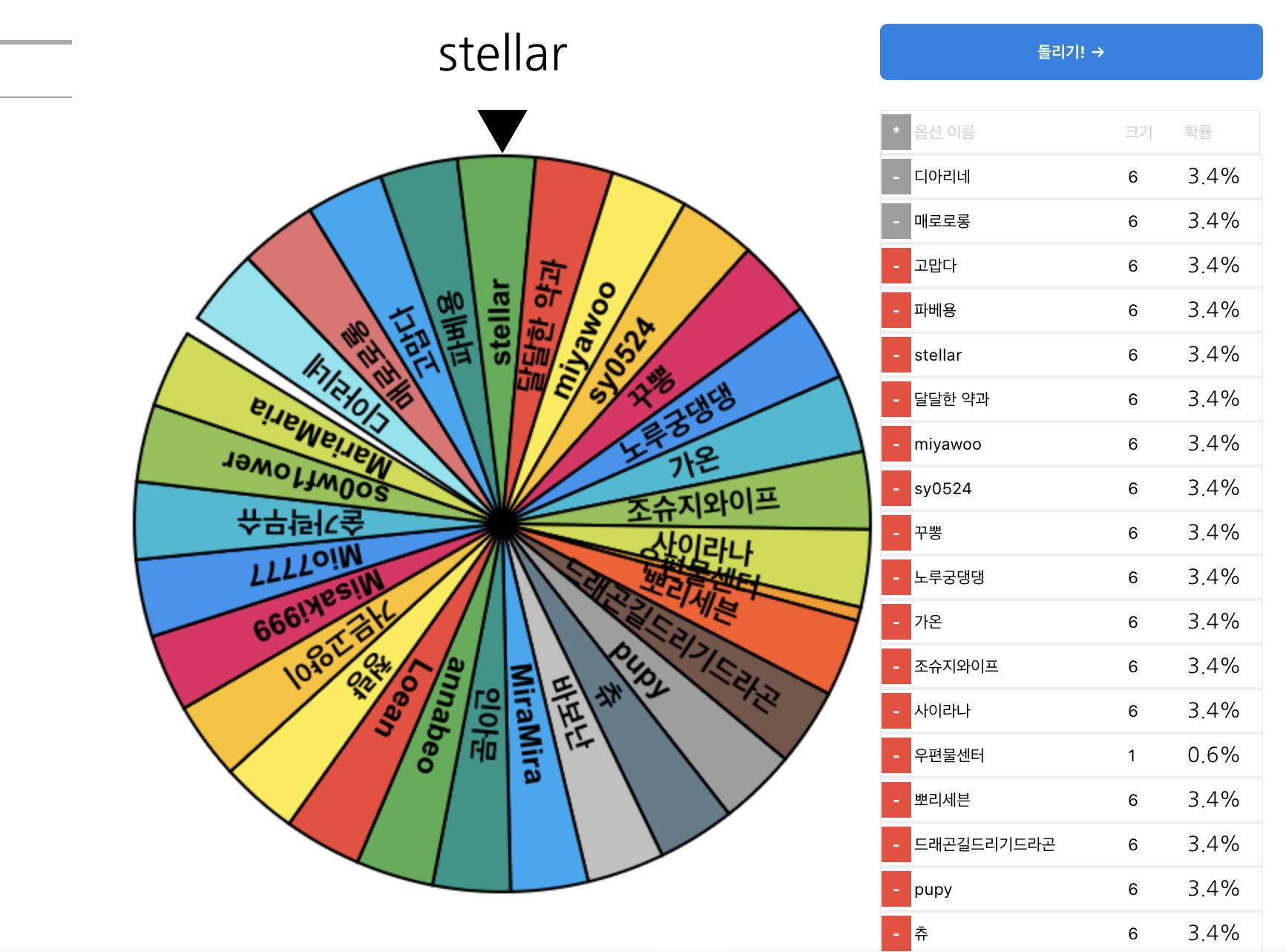 정답자 분들이 많으시면 룰렛 돌릴게요