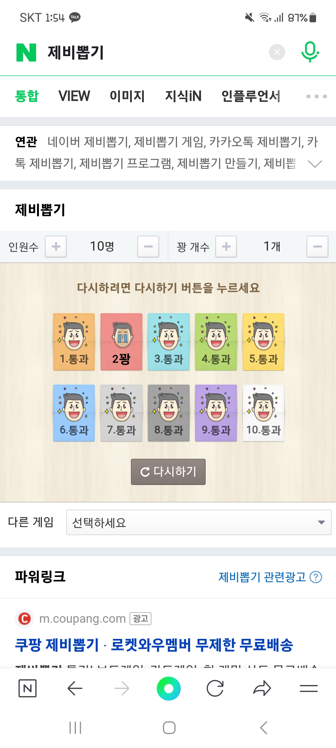룰렛이 8명까지라 제비뽑기 돌렸습니다.