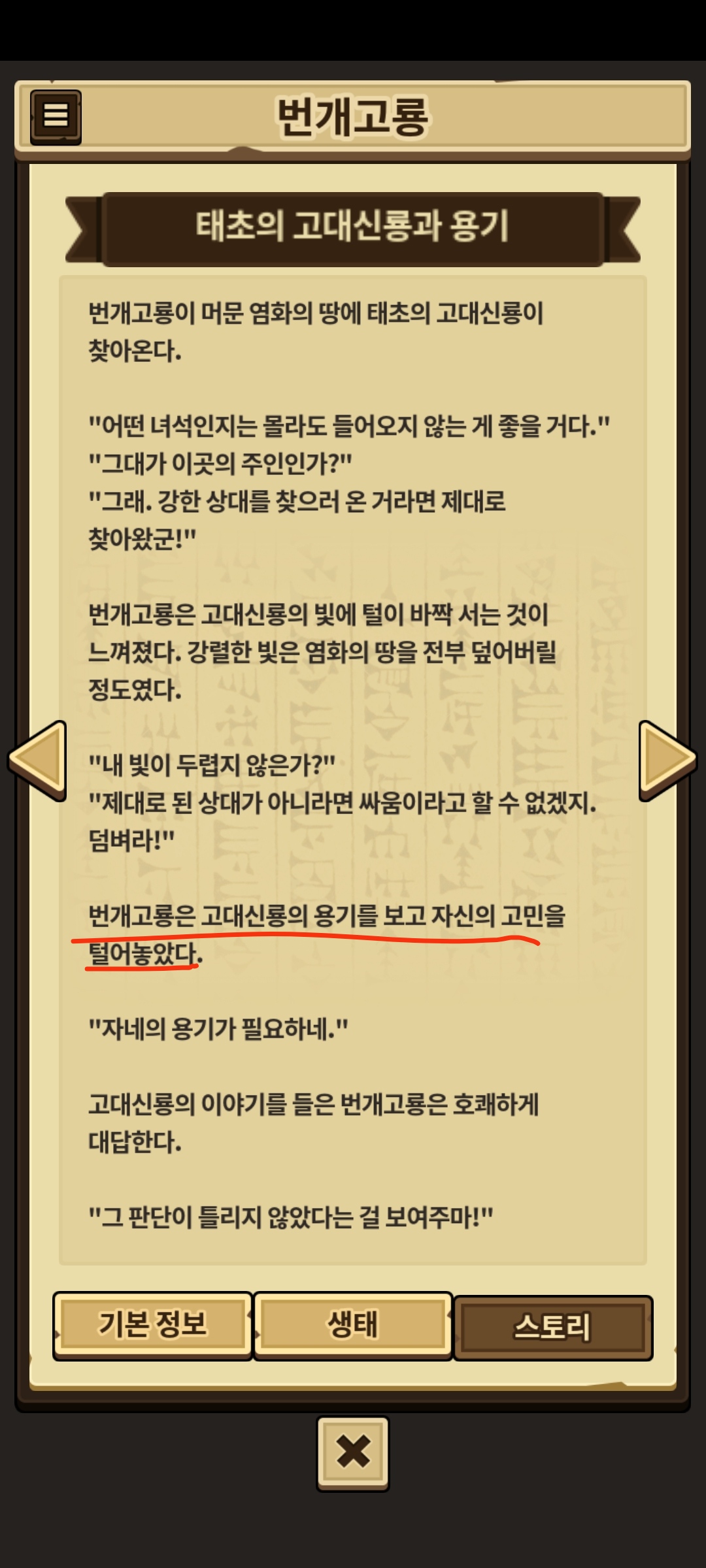 이거 아무리 봐도 둘이 바뀐거 같은데..고대신룡은 번개고룡의 용기를 보고 자신의 고민을 털어놓있다 아닌가요?
