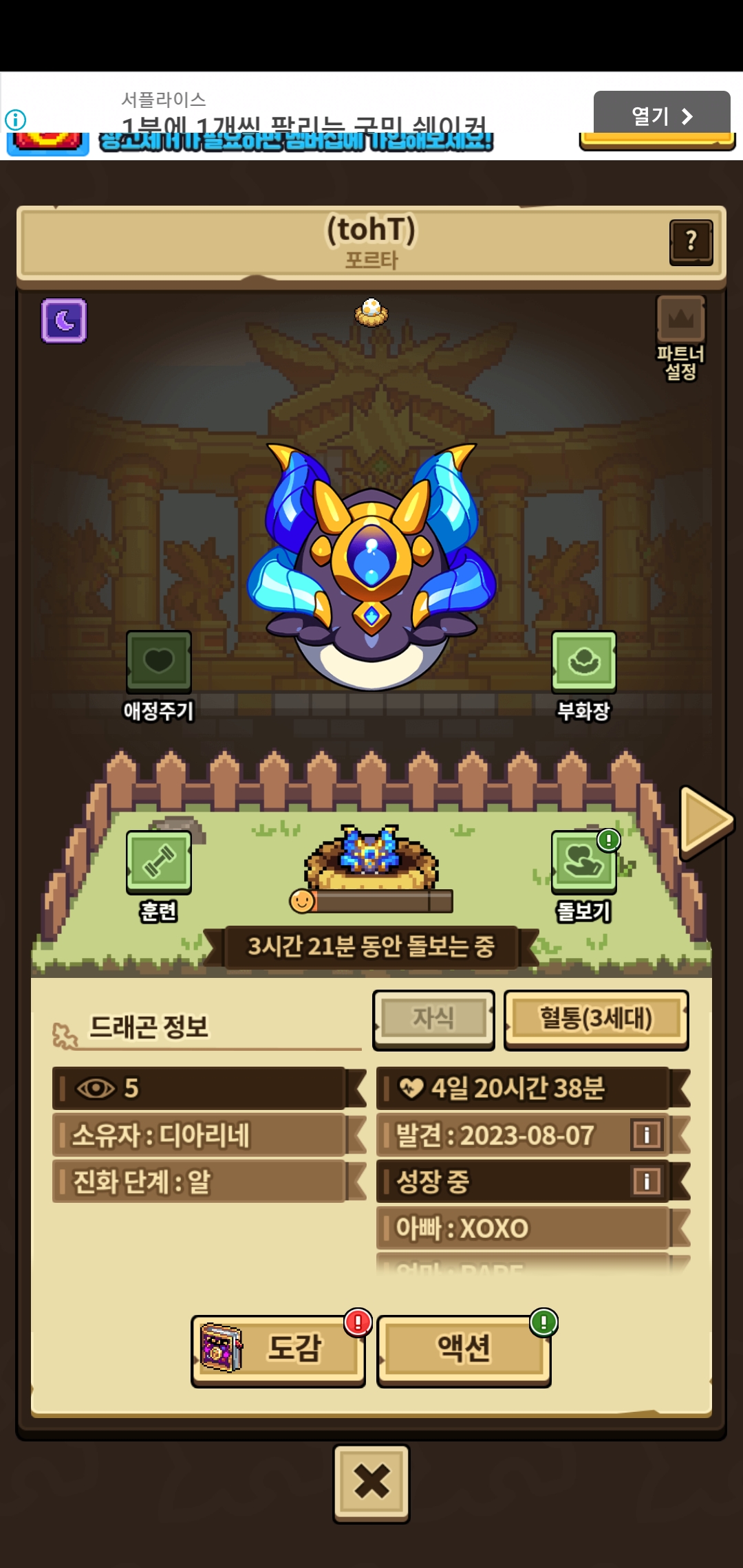 후후 내 귀요미들 페로스 둘다 실패했으니까 한마리 정도는 너희는 성공하겠지? 좀 떠라