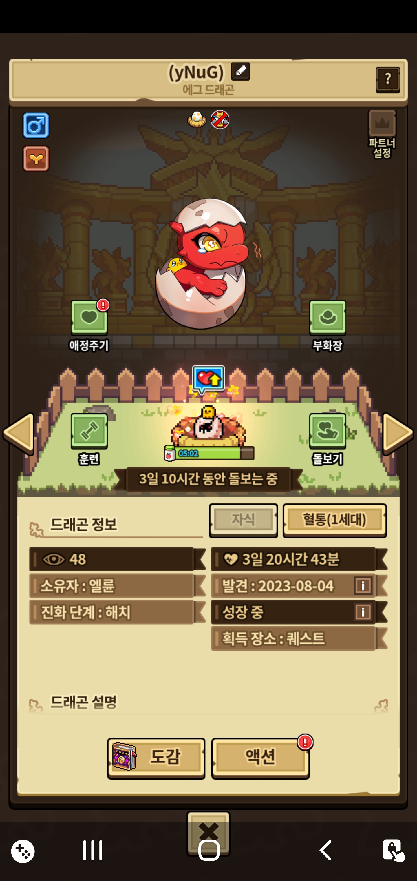 망했떠..ㅠㅠ 색 다른(붉은색)에그 첨으로 성격작(기품) 중인데 애정주기떳어요ㅠㅠ