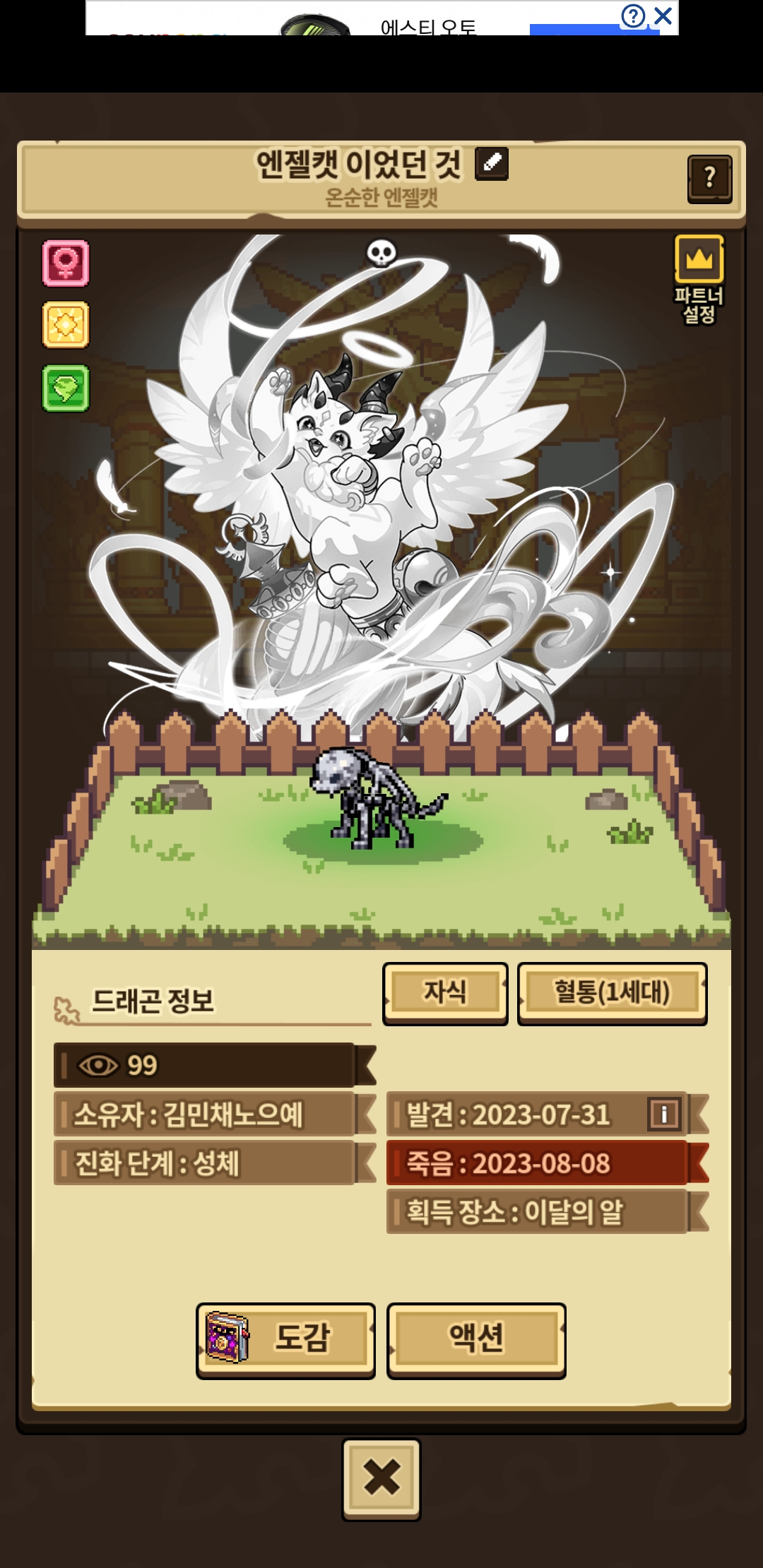 엔젤켓 죽으면 이렇게 생겼습니당 ..