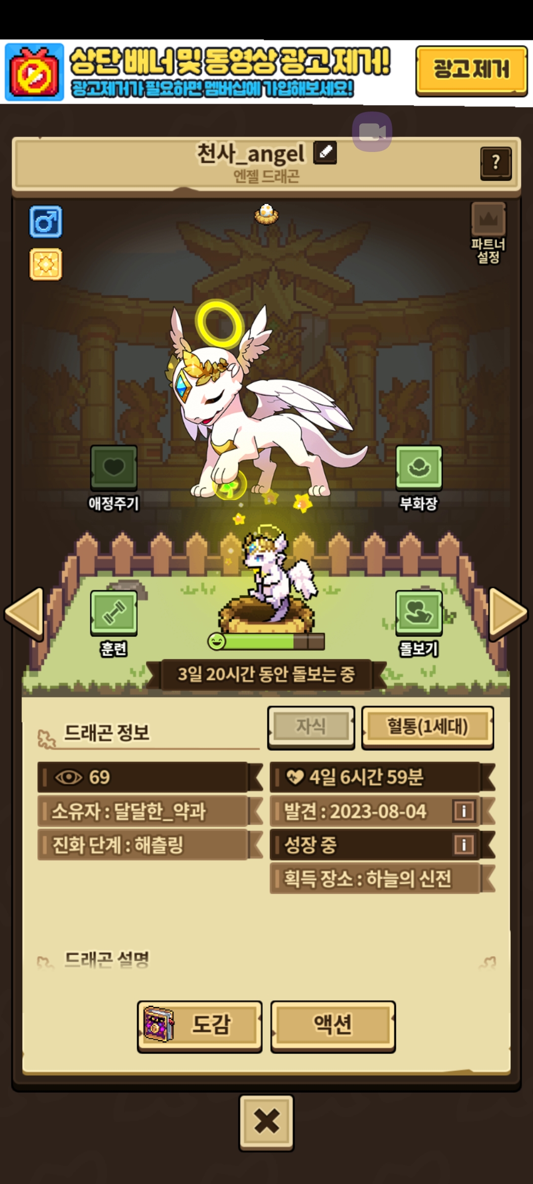 표로님이 주신 엔젤이 해츨링이 됬는데 성격작은 실패했네요ㅠ 성체 되면 달빛보석 돌려볼게요! 다시한번 감사합니다!!