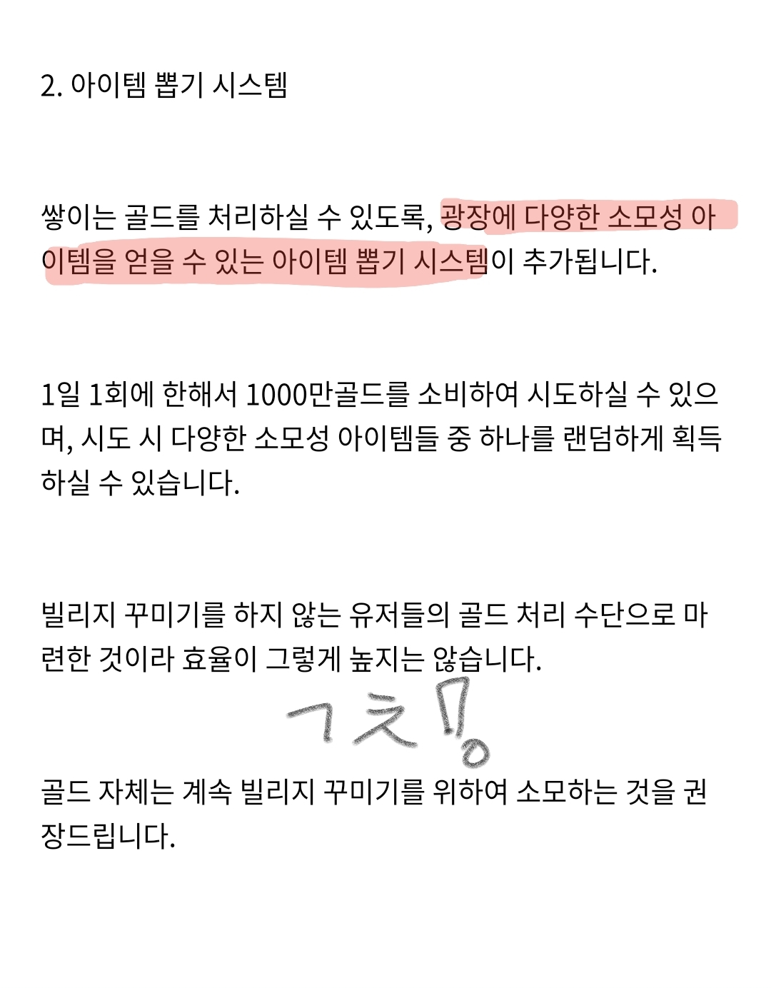 빌꾸 안 하시거나 진짜 골드가 썩.. 아니 아주 많은 분들께는 좋은 소식 일지도?