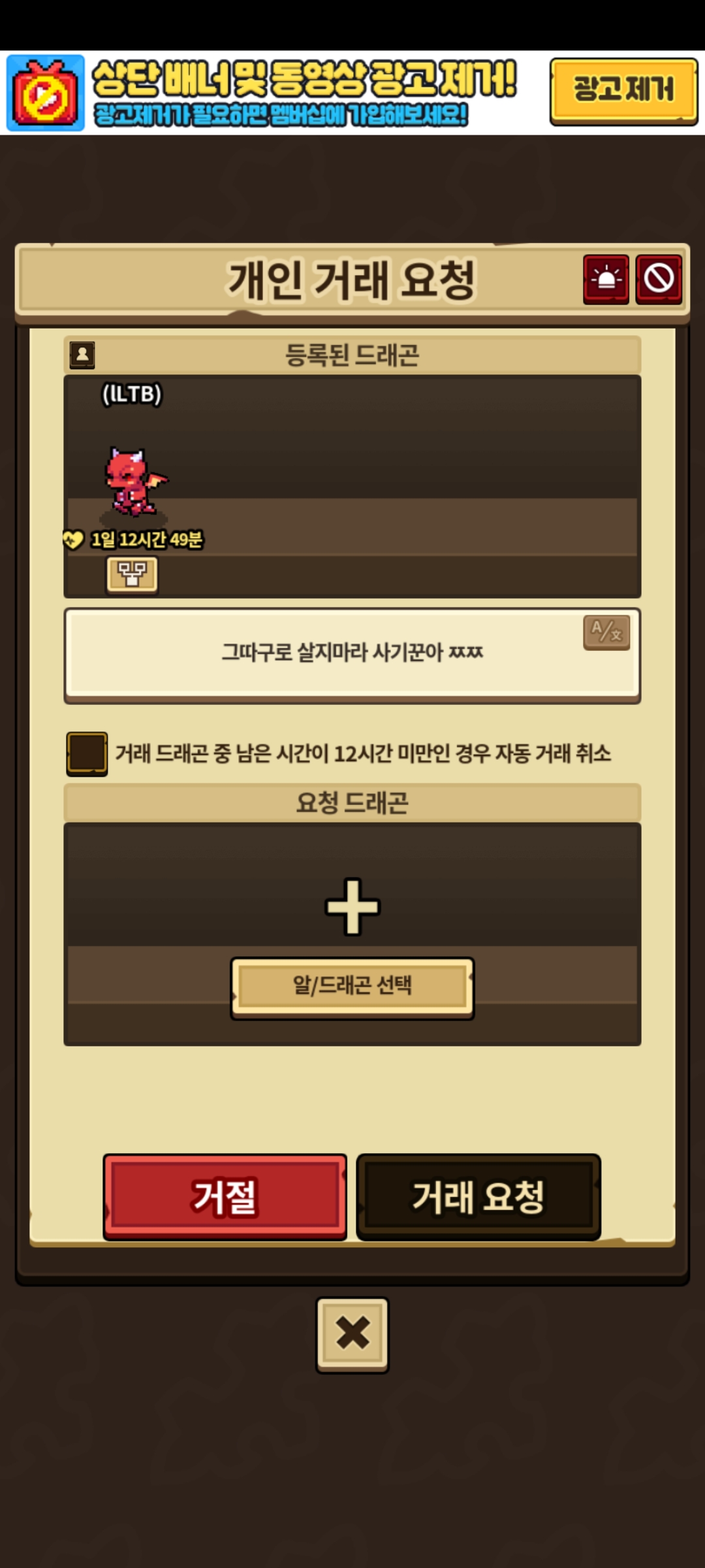근데 그냥 무시하고 거래가 와서 화나고 짜증난 마음에 방명록에 글을 모쓰게 해놔서 개인거래로 한글 모르냐고 했습니다 그런데.. 답장이 갠거로 이렇게 오지 뭡니까?