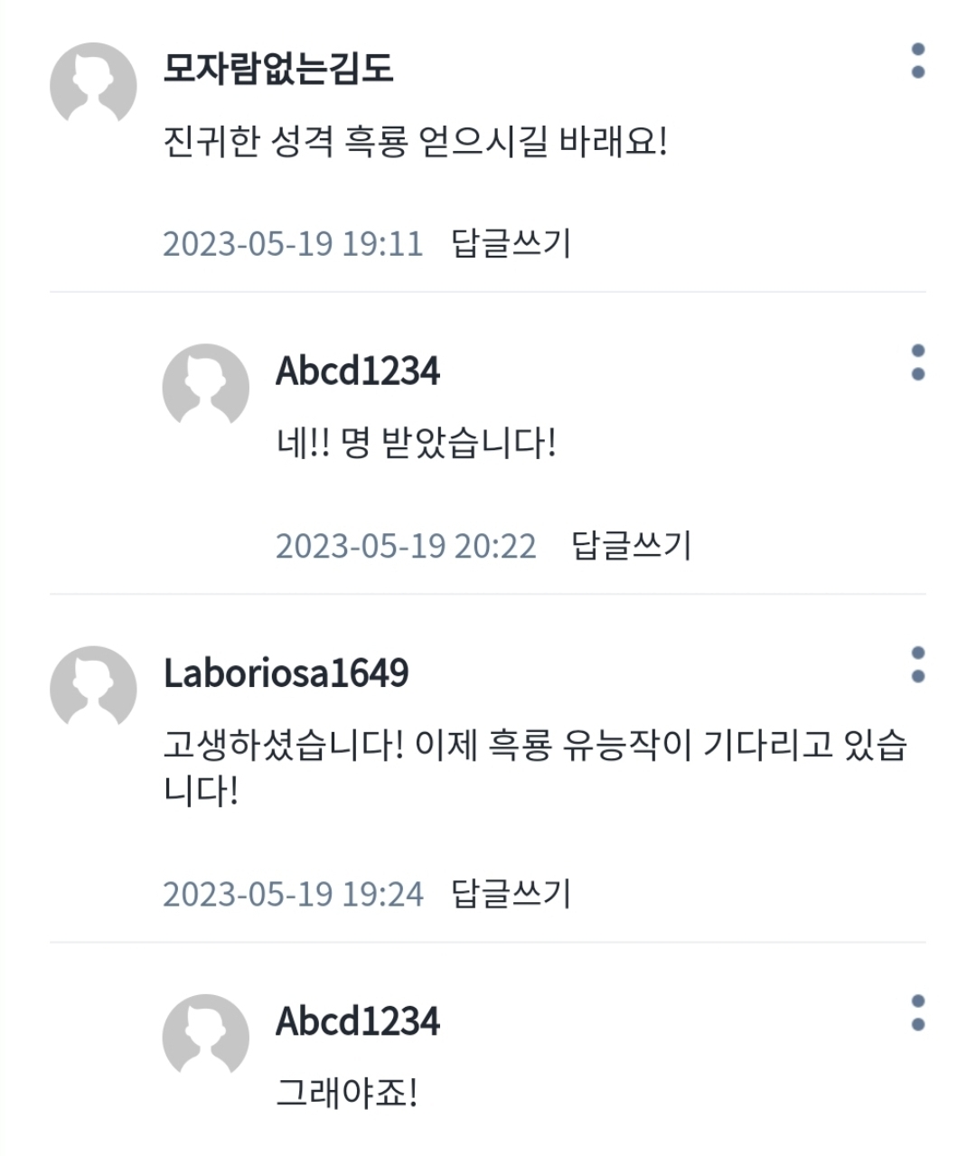 자유게시판 약속지켜드렸습니다. (댓글확인) ABCD1234 2023-05-22 06:36 419 1 공유 공유 URL 복사 페이스북 왓츠앱 카카오톡 라인 레딧 닫기 공유 1 0 댓글 1 삭제 이미지첨부 0/3000 등록