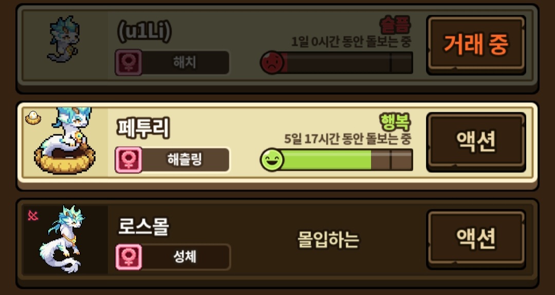 거래 중인애 광적인 인데요.. 페로스 수컷 순혈 2세대 원해여ㅠㅠ 성격 완료 되어있으면 더 좋고요