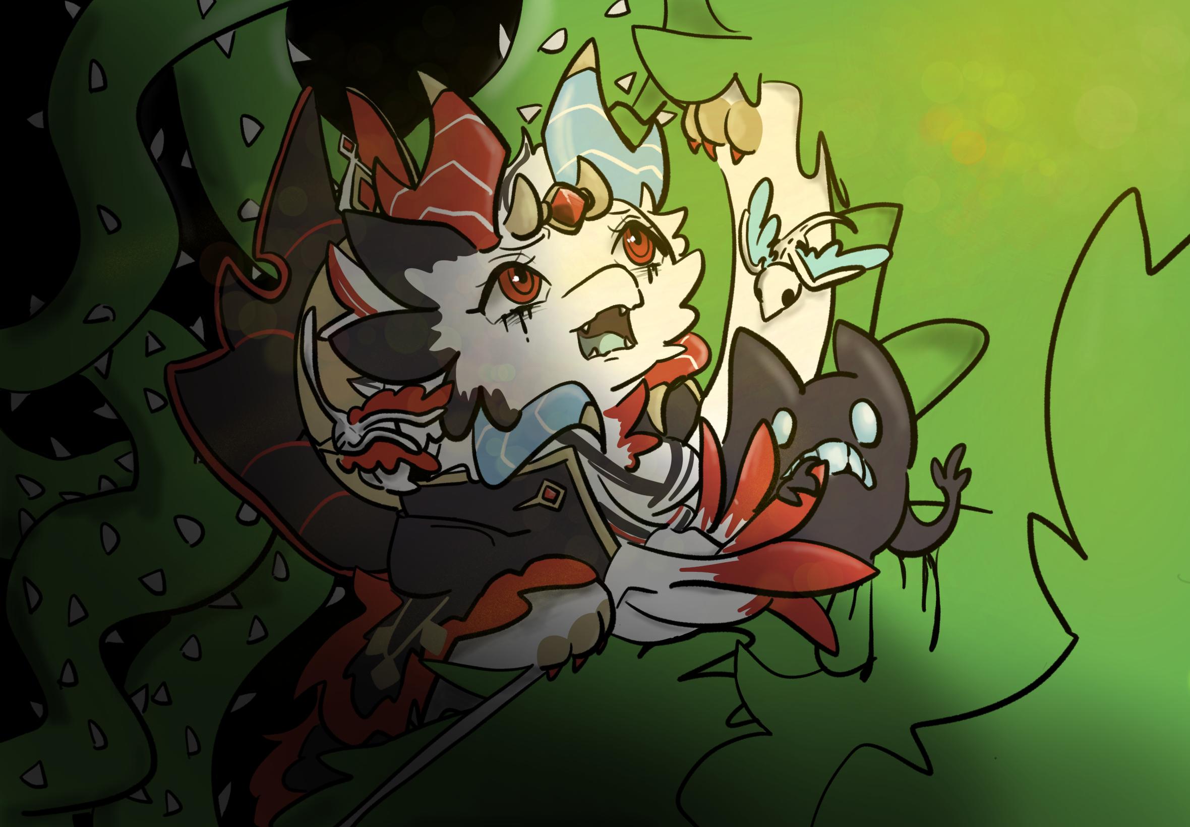 6등/이분도 의인화인데 얼굴 빛 표현을 잘하시는것 같아요!! 뭔가 고운 피부 느낌..달빛을 받고있다는 느낌이 팍 들게 하는 작품이에요! 다른 부분들은 어두운 톤이라 얼굴에 시선이 자동으로 가는것 같아요! 유령친구도 원본 느낌 나도록 작해주셨어요UU 뿔이 원 비슷한? 달 같은 모양인 점도 머리카락에 어울리게 달아주셨는데,마음에 들었어요!! 제가 화면을지금 50분 넘게 보고있어서 눈이 아파 더 써 드릴수 없어 죄송합니다ㅠㅠ