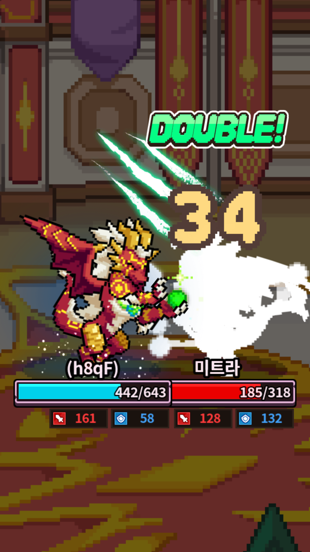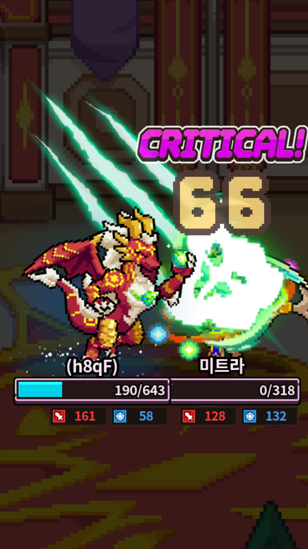 크리티컬/ 두 번 / 세 번 공격 시 초록색 구름이 폭발하는 이펙트가 보입니다.
