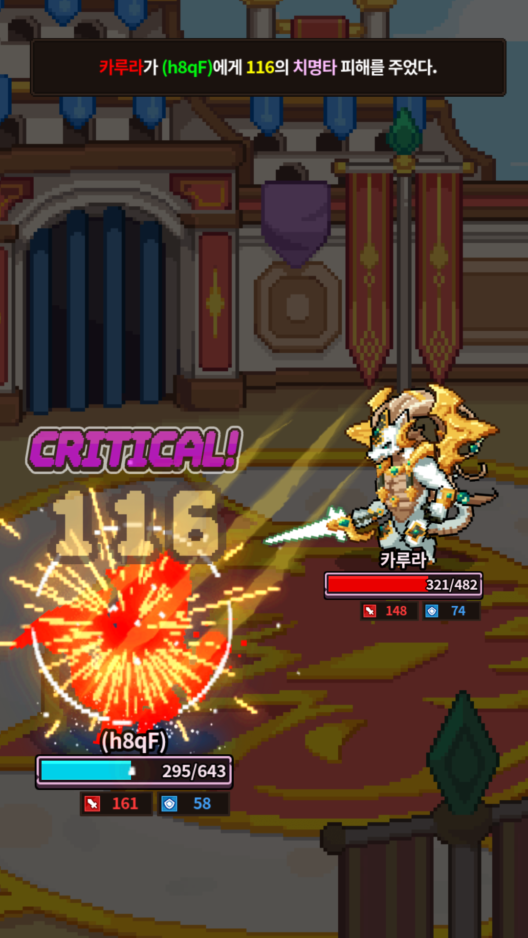 두 번, 치명타 공격 시 드래곤들에게 화면이 줌인 되며 화면이 암전되는 효과와 해당 텍스트가 뜹니다.