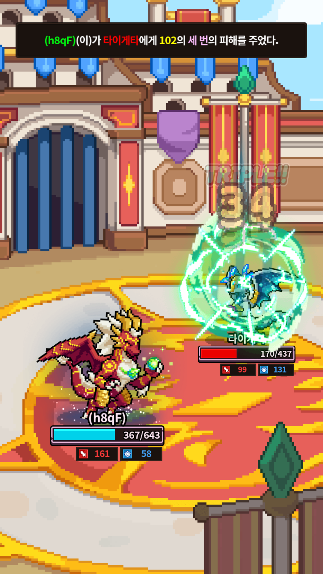 세 번 공격 시, 자신의 드래곤이 공격할 때만, 드래곤이 표시되며, 3번 공격하게 되비다.