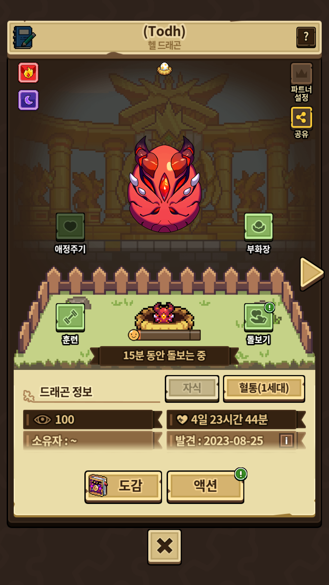 인 게임 내 조회수 0으로 표시되는 드래곤에게 루피아 특수 액션을 사용.