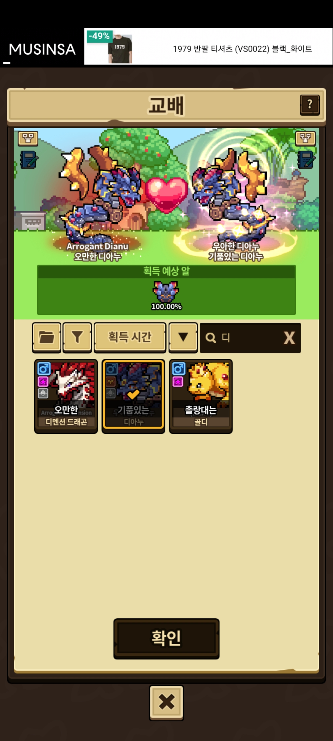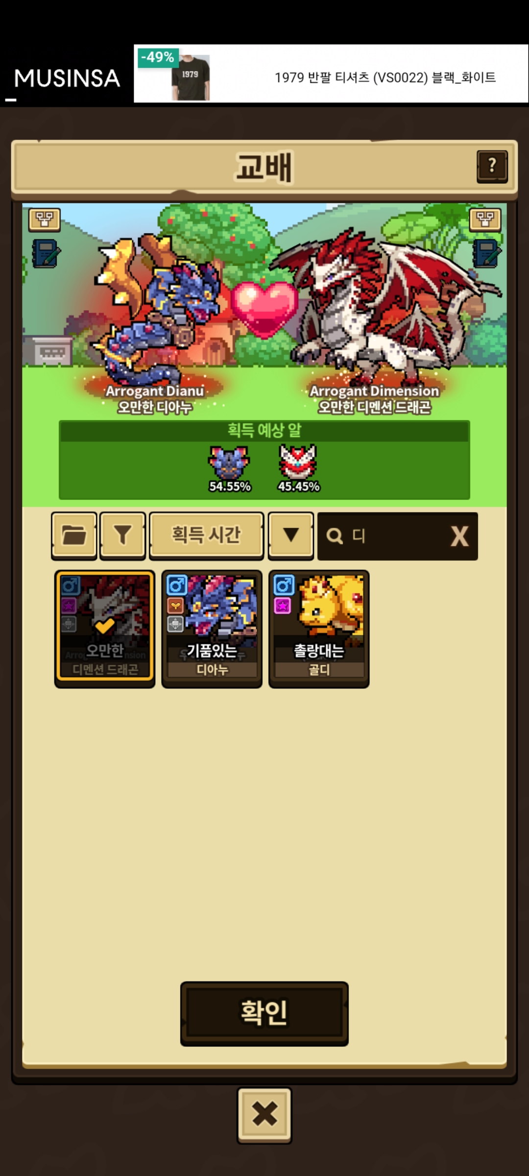 2)순혈 2세 오만 디아누×순혈 2세 오만 디멘션(뭐가 나올지 장담 불가)